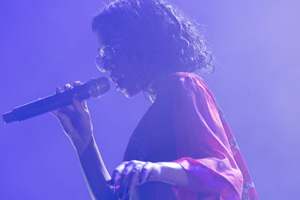 衝撃的なステージだった。アート領域からアンダーグラウンドまで、2015年のダンサーとしてのリズム感覚を完全に内在した身体が歌うとこうなるのか! と完全に打ちのめされた。もちろん、ダンサーだから必ず歌が上手いわけではない。彼女の場合、元々持ち合わせているリズムの感覚が桁違いで、それがあらゆるパフォーマンスに奏功しているのだろう。歌の表現力も別格。自分の曲とは言え、あれほど高度にトリッキーなトラックの上でああいう風に歌える人って世界でもそれほどいないのではないだろう。ライブ全体も抑制の効いた前半からゲスト・ダンサーとのヴォーグのパフォーマンスを経て、後半に向けてよりダイナミックになっていく構成となっていて、その制御感も完璧。引き連れたバンドメンバーも、基本的にはパッドでの演奏だったが、非常によく訓練されていた。加えて、音響面の充実した<WHITE STAGE>のポテンシャルを完全に引き出すようなサウンドにもなっていて…と書き出すと切りがないほどに素晴らしかった。デビュー・アルバム1枚で<WHITE>のトリ、というのも全く道理にかなっている。書いているいまも正直、分かってないことが多すぎて、あと5回は観たい! 興奮しまくっている。