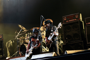 こちらの心配心など軽くへし折る圧巻の極悪非道ステージ。レミーの声もしっかり出ているし、フィル・キャンベル(gt)、ミッキー・ディー(dr)の演奏力も抜群で(ソロ・コーナーもすごかった!)、間違いなく今回のフジのベストアクトの一つ。メタラーからもハードコア好きまで、幅広いリスナーに最大限のリスペクトを贈られる彼らだが、その楽曲の多くはいわゆるブルースの進行に基づいていることにも改めて気付かされ、非常に興味深かった。やっぱり根っこは少年期に聴いたロックンロールやR&Bなんだな、と思うと泣ける。演奏後は、3日間でこの日のみ設置されていた花道を歩いて客席近くまで移動。メンバー全員で揃ってお辞儀を披露するという謙虚な場面も。あんなにヘヴィなステージを展開されて、そこまでされたら、それはもう大好きになっちゃうよな~。
