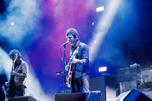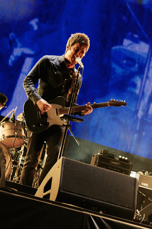 フジロック最終日を締めくくるのはノエル・ギャラガーズ・ハイ・フライング・バーズ。12年の同イベントでヘッドライナーを飾ってから3年ぶりの出演。しかも、今年の4月に武道館2日間を含むジャパンツアーを行っていたばかり。そんなに久々でもない来日。大物アーティスト来日の<ありがたみ>が薄れてしまっても仕方のないスケジュール。筆者の周囲でも「こないだ見たし(笑)」など、3日目のノエル兄さんを見逃す気満々のやつらばかりだった。正直、FKAツイッグスも気になるところだった。が、一発目に「Everybody’s on the Run」で、「俺のステージから逃げてんじゃねえ!」と見逃す気満々のやつらを一蹴。ソロ・プジェクト2枚も成功し、前回の来日公演を含むツアーも順調にこなし、バンドの真ん中に立ってステージを進めていく兄さんの姿は自信に満ち溢れていた。