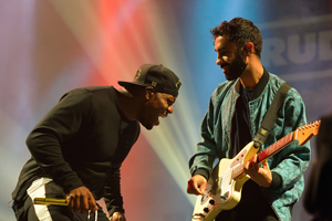 裏がフー・ファイターズということもあり、観客が少なめ…なのもお構いなしで、のっけからハイテンションなステージで観客の心を鷲掴みにしたルディメンタル。グループのコアは4人だが、ドラムや管楽器を担当する生バンドに加え、アルバム参加のゲスト・ヴォーカルのパートを歌うシンガー4人という大所帯。9月には新作のリリースを控えていることもあり新曲を数多く披露し、初めて聴く曲も多数あったが、ドラムンベースの鋭敏なビートと生楽器の心地良い音色に揺られ、不思議と体が動く。ラストの大ヒット・ナンバー「Feel The Love」では、観客から自然とシングアロングが沸き起こり、メンバーの満面の笑みとともに最高にユーフォリックなフィナーレを迎えた。前評判でライブが素晴らしいというのは聞いていたが、ただダンサブルなだけでなく、こんなにも音楽性に満ちた“生身”なステージを披露してくれるとは。11月には初の単独公演も決定、是非この機会に彼らのライブ力を生で感じて欲しい。