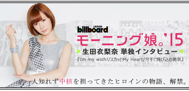 生田衣梨奈:今は「みんなが主役になれれば良いね」とか「ちゃんとひとつの集団になれたら良いね」とかあるんですけど、モーニング娘。'15になってもモーニング娘。'14に浸りすぎちゃったりもするので、それはあんまり良くないなって思っています。'15は'15で固めていきたいなって思うし、'14を超えようっていう気持ちをもっともっと強く持ちたいなって。ファンの皆さんは'14のことをすごく褒めてくれていたので、次はちゃんと「モーニング娘。'15、良いね」「モーニング娘。'15、最強だったね」って言われたい。先輩が卒業して、新しくなったモーニング娘。として褒めてもらえるようになりたいなってすごく思います。Interviewer:平賀哲雄