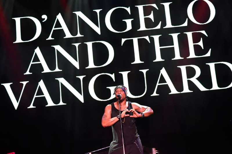 2014年の傑作『ブラック・メシア』にも掲げられた“D'ANGELO AND THE VANGUARD”という文字列が、この日最後のマウンテン・ステージのバックスクリーンにも大きく掲げられていた。待望に待望を重ねたディアンジェロの15年ぶり2度目の来日ステージは、しかし、紛れもなくディアンジェロ・アンド・ザ・ヴァンガードのステージでもあった。ベースのピノ・パラディーノ、ドラムのクリス・デイブ、ギターのアイザイア・シャーキーを中心に、ジェシー・ジョンソンやクレオ・“ポーキー”・サンプルらを加えたザ・ヴァンガードの面々は、確実にこの日のディアンジェロのステージを“現代ファンクの最高峰”のライブに仕立てていた。