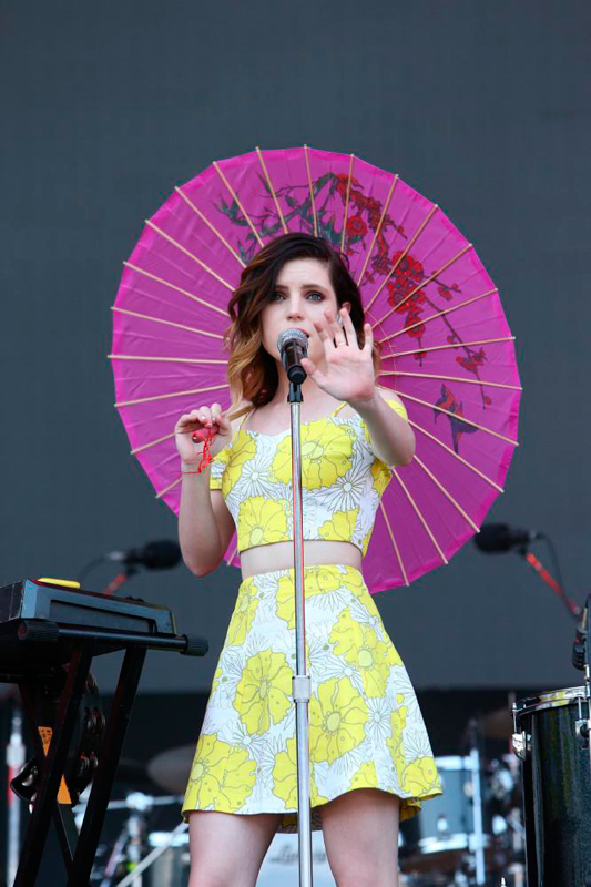 初来日ステージとなった人気急上昇中の米バンド、エコスミス。黄色い花柄のセットアップに身を包んだボーカルのシドニーが「We are Echosmith!」と挨拶を済ませると、MVが公開されたばかりの「Let's Love」でショーがスタート。デビュー曲「Come Together」やアルバム・タイトル曲「Talking Dreams」、「Come With Me」などのアップテンポなナンバーに合わせて、ステージ上を動き回る観客を煽るシドニーに、観客も手を叩いたりジャンプしたりして応えていた。ラストはヒット・ソング「Cool Kids」で最高潮にスタジアムを盛り上げ、30分ほどのステージだったが、新人バンドらしいポップで元気いっぱいのショーを見せつけた。今回はギターのジェイミーが奥さんの出産のため来日できなかったが、サングラスをかけながらクールにドラムを叩くグラハム(ベビーフェイスの16歳!)や、全身でベースをかき鳴らすノア、そしてタンバリン、ドラム、キーボードと様々な楽器を担当するキュートなシドニーの姿を見て、次は4人揃った姿でもっとビッグになって日本に戻ってきてほしい。