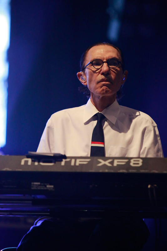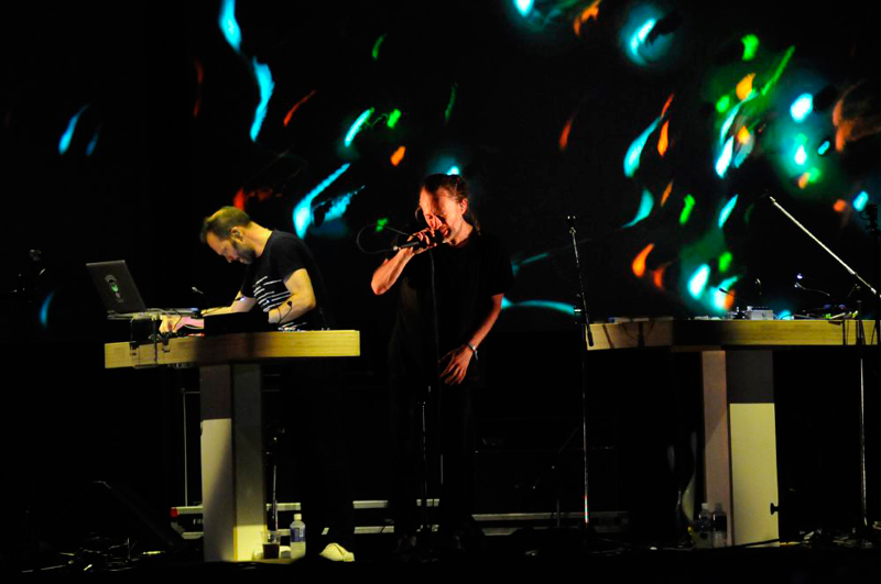 今回は作品ではなくライブだが路線はそれほど大きく変わらない。1時間強という演奏時間で十数曲を演奏し、3曲が新曲(前述の通り、いずれも断片的な新曲だ)。既発曲も音源と異なるアレンジが施されている部分が多く、ほぼ全ての曲で、曲と曲が繋がっている構成になっている。おまけに楽器のサウンド・レパートリーも極めて限定的で、トム・ヨークの歌に加えて、マシンドラムとシンセサイザー、そして時々ヨーク自身が思い出したように弾くギターがあるのみ。そうなってくると、やはりライブ全体の印象は限りなく茫洋とした、アブストラクトなものになっていく。いわばショウ全体が一つの潮流のように感じられてくるのだ。そこには激流もあれば、一気に空間が開けたような穏やかな時間もあり、それの流れに揉まれているうちに時間が経っていく。そんなステージ。そこにはFKAツイッグスのようなモダンなアクトがステージ上で紡いでいる最先端のポップスへの目配せがあると感じた。その上で、異様に生々しくてハイファイな音の鳴りも印象的。やはりとてもユニークなライブだったと思う。最後はファンへのささやかなプレゼントとして「デフォルト」がアンコール披露された。