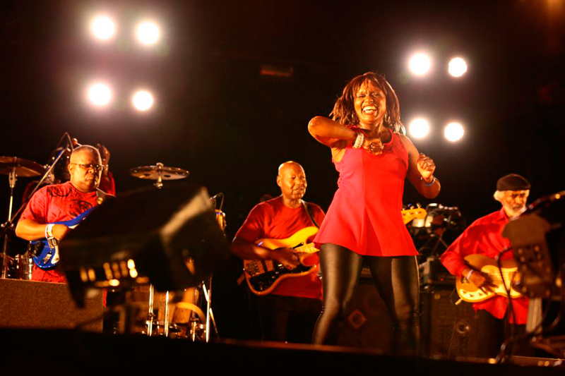演奏が上手い! 身も蓋もない言い方をすれば、この日のライブを観ていて一番最初に抱いた印象はそれだ。直前に、ダニー・レイが体調不良のため出演できなくなってしまうというトラブルに見舞われた今回のオリジナル・ジェームス・ブラウン・バンド。ダニーの不在により、たしかにあの天下無敵の祝祭感、ショーをぶち上げる感じは弱まっていたが、その分、ストイックなバンドの演奏の魅力が前面に出ていたとも言える。こうして様々なスタイルのアクトが出演するフェスという場だからこそ、シンプルながら徹頭徹尾反復するリフの組み立てによって観客を昂揚に導くJB流ファンク・スタイルの有り難さというのも沁みる。冒頭、マーサ・ハイがボーカルをとる形でステージを始めた後、2曲ほどを歌い終えてルーズベルト・ジョンソンを呼びこむと会場はさらにヒートアップ。いつ聴いても完全無欠のR&Rチューンである「アイ・フィール・グッド」。EDM時代にこそ、その構成の大胆さに改めて感じ入る「セックス・マシーン」など、時代を経て廃れるどころか、むしろのその尊さが思い知られるような楽曲群に何度もシビレた。伝統芸能化すべきポップ・ミュージックNo.1。JBバンドは永遠に続く。