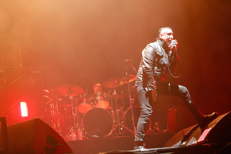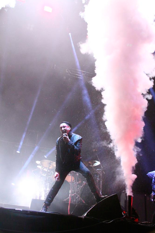 SONIC MANIAと同じ幕張メッセのMOUNTAIN STAGEに登場したマリリン・マンソン。前日同様、スモークをふんだんに炊いたステージに黒のジャケット、赤いスカーフ、を巻いたブライアン・ワーナーが登場すると、雄叫びにも似た歓声が降り注ぐ。「昨日もここでやったんだが、皆とても賑やかだった。だから、お前たちも、もっと騒げ!!トーキョー!」と絶叫して「Disposable Teens」に突入。一気に会場のボルテージが上がり、轟音と狂気と興奮のマリリン・マンソン・ワールドに包み込んだ。ジャケットを脱いだ時の二の腕が若干衰えを感じさせてしまったものの、感情に満ちた声とシャウト、そして全身にまとったダークなオーラは健在。「Third Day of a Seven Day Binge」や「The Dope Show」など新旧の楽曲を織り交ぜながら、刃や指サックのついた凶器的マイクを投げ捨て、ベースの頭をタンバリンで叩いたり、ベースに粉を振りかけたり、ベースの股の下をくぐったり、ブライアン・ワーナーの一挙手一投足にオーディエンスは惹きこまれた。終盤に差し掛かるとトーキョーコールでオーディエンスを扇動した後、「Rock is Dead」で会場を揺らし、「Antichrist Superstar」では演台で聖書を燃やすパフォーマンスを披露。ラストに向け怒涛のパフォーマンスを展開した。ラストを前に暗転したステージにうっすら光が灯ると、ステージ後方には翌日のBeach Stageに登場予定のブラス・バンド、ザ・ソウル・レベルズが整列。目の周りを赤くペイントしていたブライアン・ワーナーの顔には黒いペイントも加わり、「黒人も、白人も、黄色人も、みなBeautiful f**kin peopleだ」と訓示を述べ「The Beautiful People」をドロップ。最後はステージから降りて中央を練り歩き、轟音と狂気に満ちたMOUNTAIN STAGEの幕を下ろした。