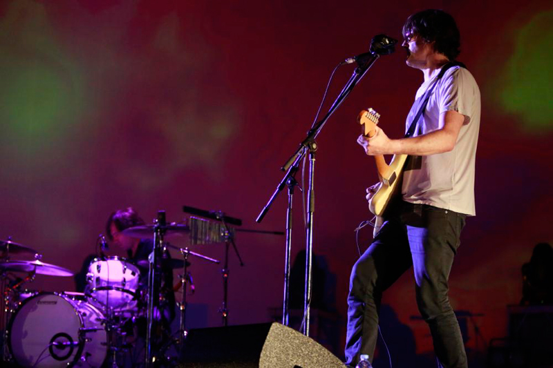 ディアハンターの突然のキャンセルを忘れさせてくれるほど完成度の高いライブを披露してくれた我らがジェーソン・ピアース率いるスピリチュアライズド。今回は女性ヴォーカル隊不参加のシンプルなバンド編成で、1曲目の「Hey Jane」で少々肩すかしをくらった状態でスタート。攻撃的な電子音が会場を駆け巡る「Electricity」、ブルージーなギターが吠える「She Kissed Me (It Felt Like a Hit) 」などのアッパーなチューンから、スペーシー&サイケデリックな「Shine a Light 」や「Oh Baby」まで緩急がついた鉄板セットリストで攻めてくる。まるで万華鏡の中に迷い込んでしまったかのような錯覚を受けるVJから幾何学模様のカラフルでポップなVJや壮大で宇宙的なVJも楽曲と見事にシンクロし、みるみると観客を“スピリチュアライズド・ワールド”に引き込んでいく。もちろんスペースメン3の「Walkin' with Jesus」のカヴァーも披露され、終盤で傑作『宇宙遊泳』収録の「Come Together」のイントロが鳴り響くと、待ってました~、とばかりに天に向って拳を振り上げる観客が続出。もうちょっと爆音で聞きたかった…というのが唯一の不満点だが、90分に及ぶ濃厚なノイズ・シャワーに完全陶酔。ライブの思い出を噛みしめながら、今年中にリリースするらしい?という噂のニュー・アルバムを心待ちにしたい。