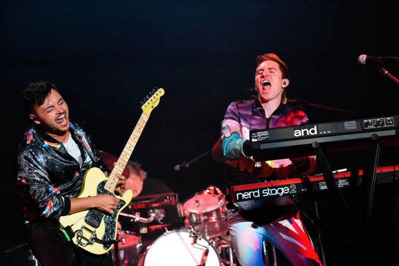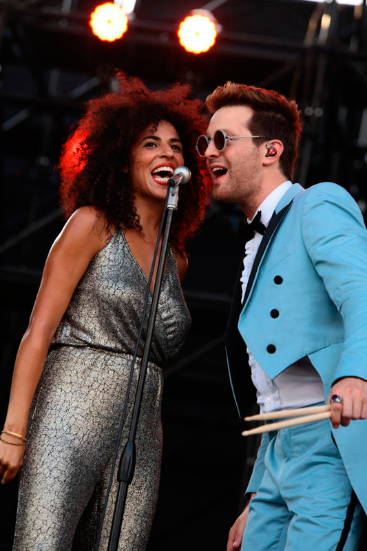 昨年はパラリと雨が降った午後4時45分のビーチステージ。今年リリースしたデビューアルバム『Tuxedo』がスマッシュヒットとなり、4月のリリースパーティーも超満員となったタキシードのフルバンドセットを見ようと、まだ太陽の日差しがじりじりと肌を焼く中、多くのオーディエンスが集結。SEをバックにターコイズブルーのタキシードに身を包んだメイヤー・ホーソーンとジェイク・ワンが登場すると、会場は大きな歓声が沸いた。「Fux with The Tux」、「Number One」でスタートすると一気に会場もダンスフロアと化し、オーディエンスが思い思いに体を揺らし始める。「R U Ready」、「Without Your Love」、「I Got U」など、アルバム収録曲を中盤までほぼMCなしで淀みなく披露。タイトなドラムに軽快なギター、グル―ヴィーなベースに浮遊感のあるキーボードの中、メイヤーがゆらゆらとダンスをしながら歌を乗せていく。少し力の抜けたゆるめのサウンドは、日差しも柔らかくなり、海から爽やかな風が吹くビーチステージに最高に映える。フォト・セッションを挟んでヒット曲「So Good」、「Roll Along」でいい感じにレイドバックした後、ロサンゼルスでナイル・ロジャースに会った話を交えCHICの「I Want Your Love」をカバー、さらにSkyy「Here’s To You」も披露し、ラストにお待ちかねの「Do It」でBillboard JAPAN Partyのトップバッターを見事に飾った。