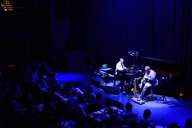 ウェインの前には、テナーとソプラノ、2本のサクソフォーンがセッティングされている。どちらも名器、セルマーのマークⅥだ。まずソプラノを手に取り、ハービーのピアノに対し透き通るような音で反応していく。
