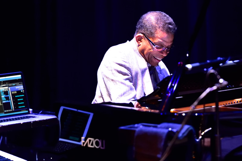 客席下手側から2人がステージへとゆっくりと歩を進める。客席から見て、左に75歳のハービー。右にウェインがスタンバイした。ハービーが向き合うのはイタリアの高級ブランド、ファツィオリのアコースティックピアノだ。すべて手作りで年間約130台しか生産していない。傍らにはローランドのシンセサイザーもある。ウェインに目で合図を送ると、さざなみのようにファツィオリを鳴らした。ステージフロアから2階席、3階席へ、さあーっと空気が変わっていく。会場が固唾を飲む。