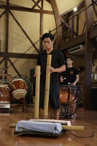 石塚:他にも“トンガトン”という、竹を切って中を空洞にして、それをコンクリートに打ち付けるフィリピンの楽器もあります。これはいい低音がでますね。あと、中国の“揚琴”やフルートも。楽器を選んでいる基準はあまりなくて、「この音いいね」っていう音を使っています。