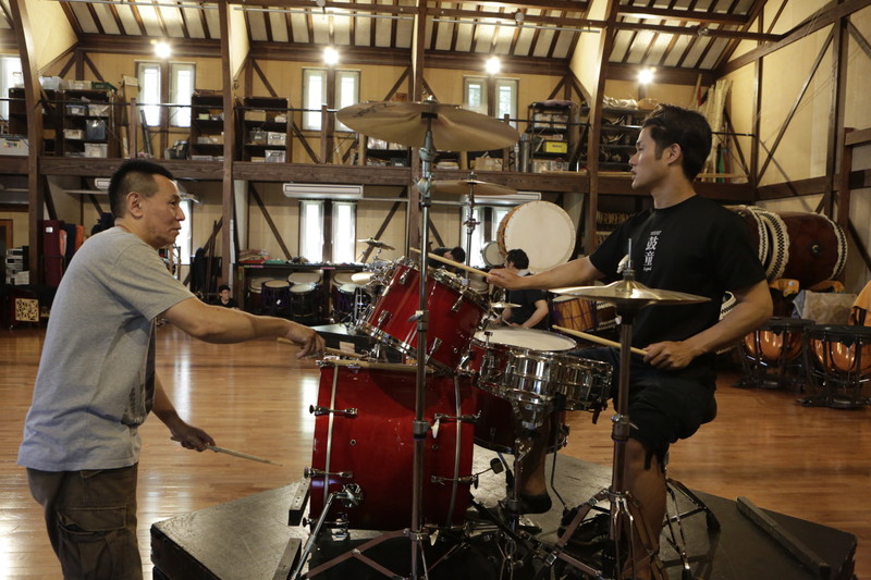 梶原:玉三郎さんの頭の中にはいつか鼓童の本公演にドラムを取り入れたいという構想があったと思うんですね。それで、坂本雅幸、小田洋介、住吉佑太の3人にドラムを教え始めたのが3年前くらいで、今年に入ってから腕がぐっと上がってかなりびっくりしました。
