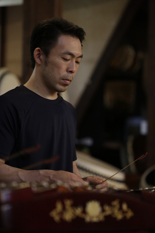 石塚:揚琴は私が担当なんですけど、今回初めて挑戦しました。ある朝、いきなり稽古場に置いてあって(笑)多分何日か前に玉三郎さんが思いついて借りてきたと思うのですが。弦がすごい数ありまして。どこをどう叩いていいかわからないというところから始まって、1度専門家の方に来ていただいてフレーズを作ってもらい、そのフレーズがどう鼓童の音に馴染むかというのを考えながら稽古をしました。これもバチを2本持って叩くので、揚琴と思わずに“叩いて音を出すもの”という感覚で取り組みましたが、実際は狙いが定めにくく苦労しました。