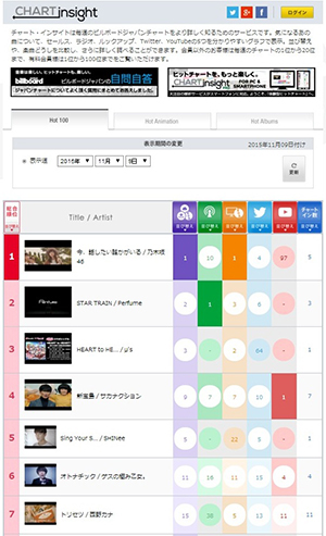 日高光啓:なにそれ、すごいですね!そんな会社あるんだ。(2015/11/2付けチャートインサイトを見ながら)ラジオだと1位はペンタトニックスなんだ。しかも、DAOKOも3位なのか。すごいなあ。