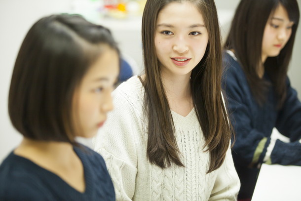 橘二葉:女王様! 高嶋菜七:この衣装、星来に似合ってるよね。 浜崎香帆:肌も白いし。 神宮沙紀:全部白い。 橘二葉:髪は黒い!--全部白かったら何だか分かんないんです(笑)。