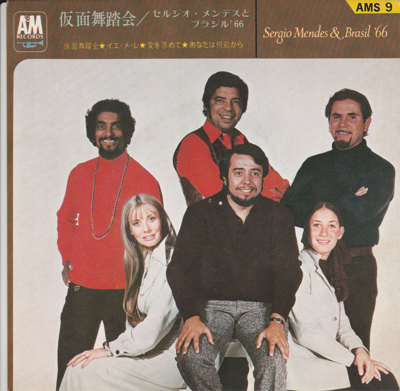 TBSラジオ“POPS BEST 10”のランキング・データ・ブック(TBSラジオ版)をチェックしていくと、セルジオ・メンデスの同チャート・イン・ナンバーは全部で4曲。最後のヒット・シングルは「仮面舞踏会」、70年5月30日付20位。ちなみにその頃はEP、もしくは17㎝LP、またはコンパクト・ディスクと呼んでいた、33回転7インチレコード(ほとんどがA面2曲、B面2曲の計4曲入り)も人気があった。シングル=2曲/¥400。EP=4曲/¥600。シングルの方ではなくそのEP「仮面舞踏会/セルジオ・メンデスとブラジル‘66」(キングレコード/AMS9)、恥ずかしながら僕がライナーノーツを書いている…(冷や汗アゲイン)。