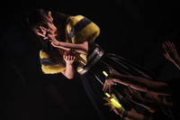 ユメノユア:体のラインも全部見えちゃうし、髪の毛とかもタイツの中に入れないといけないし、絶対に可愛くならないから(笑)、最初は「ちょっとイヤだな」って思いました。でも実際にもじもじ君をやってみたら楽しかったし、面白い経験が出来たなって。 カミヤサキ:撮っているうちにだんだんおかしくなってきて、「ちょっとだけ髪の毛出したほうが面白く映るんじゃないか?」とか試し始めて…… シグサワアオ:私は完全に文字の気持ちになってました。 ヤママチミキ:プロフェッショナルだったよね。 イヌカイマアヤ:滑らかな線の描き方とか追求するようになってた(笑)。--“エジプト十字”とか“般若菩薩のヂク”とか“大黒天のマ”とか“ダヴィンチのウィトルウィウス的人体図”とか、文字のチョイスは誰がしたんですか?