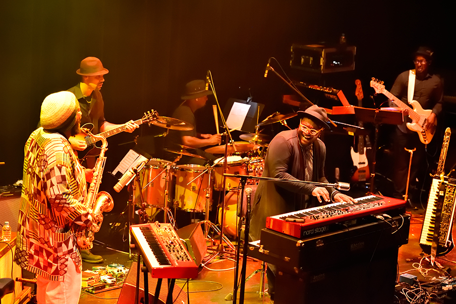 ブランドン:だよな。もしハービーがライブを観に来てくれたとしたら、俺はお終いだな。(声を裏返りながら)「皆さん、これからカマシがヴォコーダーをプレイします。」とかテンパって、意味不明なこと言っちゃいそう。そう言えば、前にマルコムとミゲル・アトウッド・ファーガソンとショーをやった時、もしかしたらスライ・ストーンが客演するかもって話があったんだ。俺は「あのスライがまさか来るわけないじゃん。」って思ってたんだけど、ライブの途中でステージ袖にスライがいるのが見えて、そのままピアノに座った時には、どうしようかと思ったぜ。
