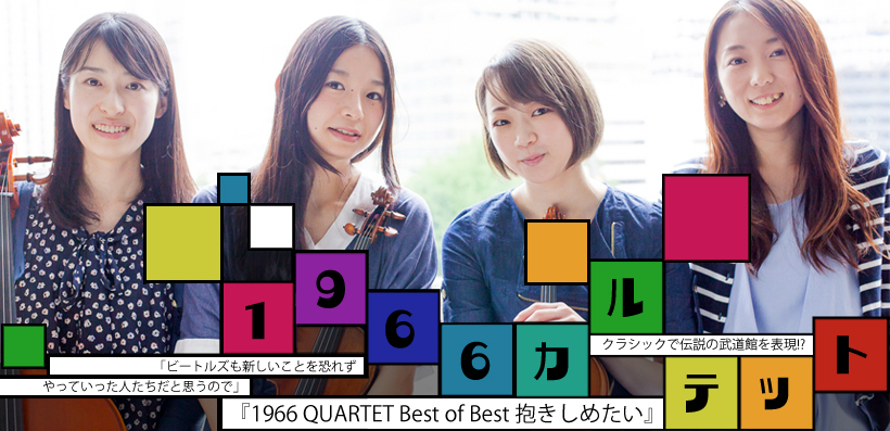 松浦梨沙:なんかのコンサートの前でやっちゃう! 一同:(笑) 松浦梨沙:でもビートルズも新しいことを恐れずやっていった人たちだと思うので、それは見習いたい。 花井悠希:音楽も時代がどんどん変わっていく中で新しいことがどんどん無くなってきてるというか、技術が進歩した分いろんなものが似てきてしまってるところもあって。だから難しいとは思うんですけど、ビートルズの時代とは全然違う感じにはなっちゃってるけど、話題性とかも含め、時代を切り開いていけたらなとは思います。--そんなどこまでも夢膨らむ1966カルテットなんですが、6月18日 銀座・王子ホールにて【ザ・ビートルズ来日50周年記念ライブ】を開催、5月26日にはビルボードライヴ大阪、6月26日には名古屋ブルーノートでのライブも控えております。