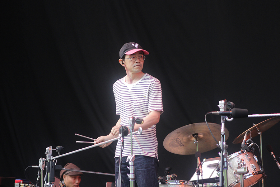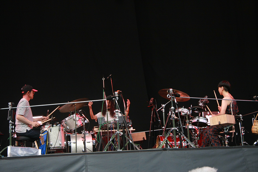 「フジロック20周年おめでとうございます。ROVOも結成20周年です」という挨拶から、満員の<フィールド・オブ・ヘブン>はROVOの「BATIS」からライブがスタート。シンセとヴァイオリンが音像を作りあげ、ギター、ベースがツインドラムのリズムに合わさり、真っ昼間の暑い日差しを忘れ、宇宙空間に連れて行ってくれる。この日のステージは、緩急をつけながら徐々に盛り上げていく、20年という時間を共に歩んで来たからこそ、フジロックを熟知したステージングだった。1曲ごとにオーディエンスからは歓声が起こり、徐々に会場全体が渦になり、ステージに巻き込まれて行く。ラストは「SINO DUB」の壮絶なプレイで最高潮に達し、ヘブン全体が多幸感に包まれた。改めてROVOはヘブンに最高に合うなぁというのを、手を挙げたお客様を見ながら実感した一時間だった。
