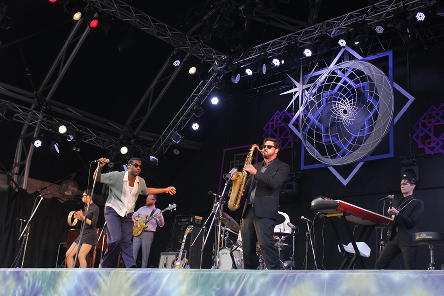 夕刻の<ホワイト・ステージ>には、今年の初来日公演もSOLD OUTしたジ・インターネットが登場するとあってかなりの観客が押し寄せていた。1曲目「Dontcha」からシド・ザ・キッドが華奢ながら存在感を感じさせるパフォーマンスで極上のメロウ・ソウル・サウンドを披露。そのまま最新作『エゴ・デス』より「Get Away」につなぐと大歓声が起こると、コール&レスポンスしながら会場のヴォルテージを更にあげていく。中盤、機材トラブルに見舞われるも、バンドメンバーの楽しそうな雰囲気は変わらず、新旧の曲を絶妙に織り交ぜ終盤へと展開し、すっかり会場の雰囲気を自分達のものにしていた。終止観客との距離を近くとりながらのMCやいちいちカッコいいシドの仕草と妖艶なヴォーカルが印象的で、彼らの幅広い音楽性が存分に散りばめられたライブだった。単独公演も是非期待したい。