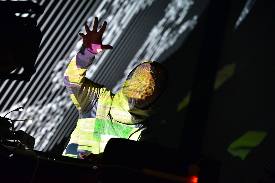 上下4面のスクリーンが設置されたステージに、自らもスクリーンになるべくフェンシング選手の様な全身真っ白のボディスーツを身にまとったスクエアプッシャーこと、トム・ジェンキンスが現れると、超満員の客席から歓声が上がり、1曲目「Stor Eiglass」で期待通りの四角い轟音からライブが始まった。シンセの美メロにのせた、『えげつない音圧』と猛烈な速さで放たれるキック音が暴力的に聴覚を襲い、その音に完璧にリンクした映像に加え、自らもスクリーンとなり映像を投影し、瞬きすら許されず、異次元空間に連れて行かれる様な感覚に視覚を奪われ、あちこちから奇声があがり、終止観客を圧倒し続けた。アンコールではマスクを脱ぎベースを持ち、「Hello Meow」 「Tetra Sync」を演奏し、チルっぽい雰囲気の中、観客へペコリと頭を下げ、圧巻のパフォーマンスが終了した。