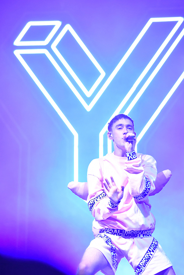 黄色い声援が飛び交う中、白シャツ&ドット柄の黒パンツ、そしてトレードマークのネイルとともに颯爽と登場するとバウンシーなベース音と哀愁漂うピアノの音色とともに「Bite」でライブがスタート。この手のポップ・アーティストに多い、トラックショーを予想していたら、どの曲もライブならではのアレンジが効いていて生音重視の本格派志向なのにまず驚かさせられる。そして、華奢なフレームからは想像できない激しいダンスで観客を煽りつつも、ブレない芯のしっかりとしたヴォーカルで表現豊かに楽曲を歌いあげていく。「Heaven」の冒頭では、カミングアウトする前に抱えていた不安について赤裸々に語り、会場を一気にインティメイトな空気に。その抜群のルックスもさることながら、俳優、YouTuberとして培われてきた、カリスマに満ちた中性的なオーラには観るものすべてを惹きこむ力がある。色々な意味で期待を大きく裏切ってくれた新鮮なライブだった。