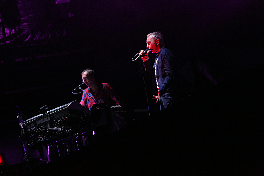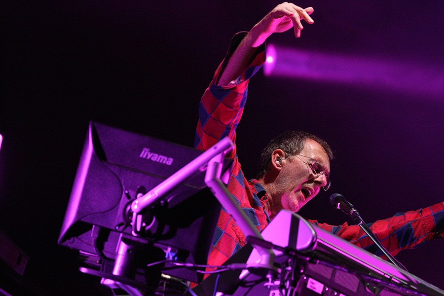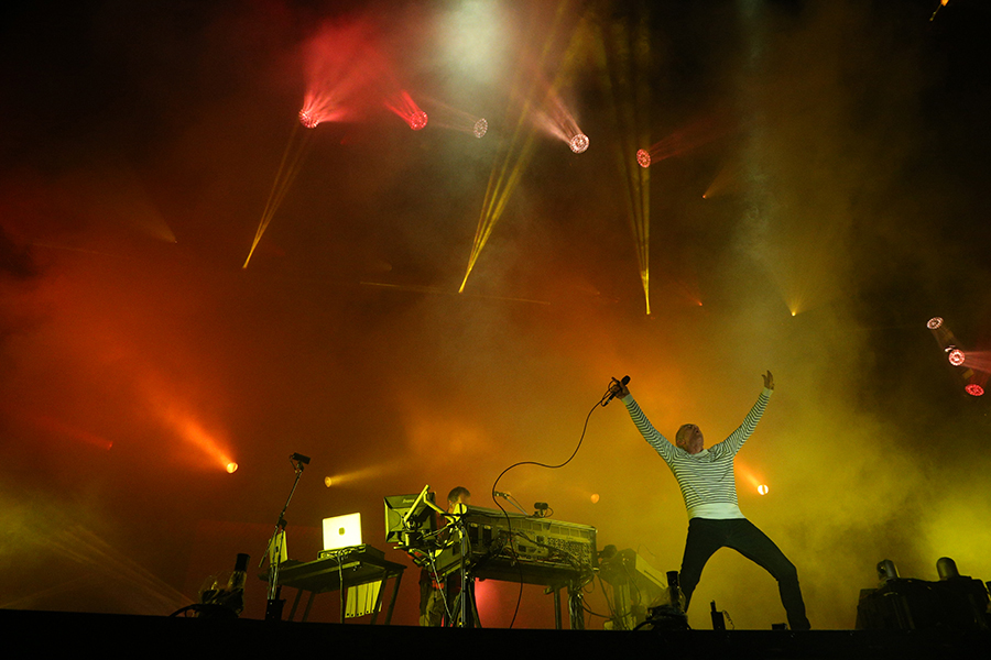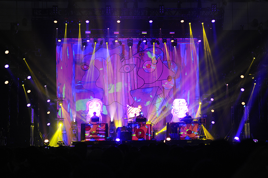 すっかり雨が止んだマリンステージに、1日目のヘッドライナー・アンダーワールドがほぼ定刻に登場するとオーディエンスは大歓声で迎えた。広いステージには、カールとリックの2人だけのシンプルな構成で、最新アルバムから「アイ・エグゼイル」「イフ・ラー」でスタート。そして、「ツー・マンス・オフ」「スクリブル」というアンセムを続けてプレイ。カールが気持ちよさそうに両手を上げて煽ると、観客もそれに答えるように手を上げて音に身を任せていた。そして終盤戦に、「レズ」が流れると無数の光るバルーンが投げ込まれ、会場はさらにヒートアップ。曲に合わせて青・赤・オレンジなどカラフルに光るバルーンがアリーナを跳ねる様子は言葉を失う光景だった。最後はみんなが待っていた「ボーン・スリッピー」。さらに打ち上げ花火が上がり、大興奮のままステージは終了となった。