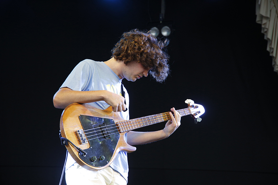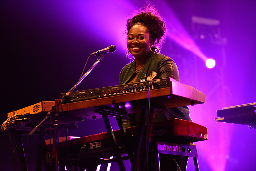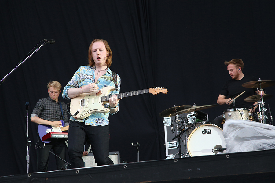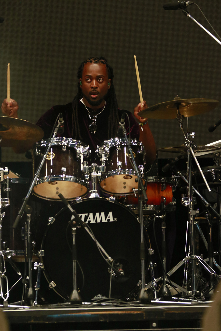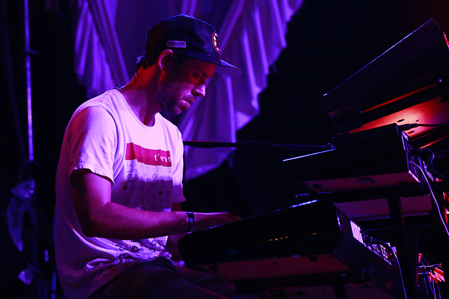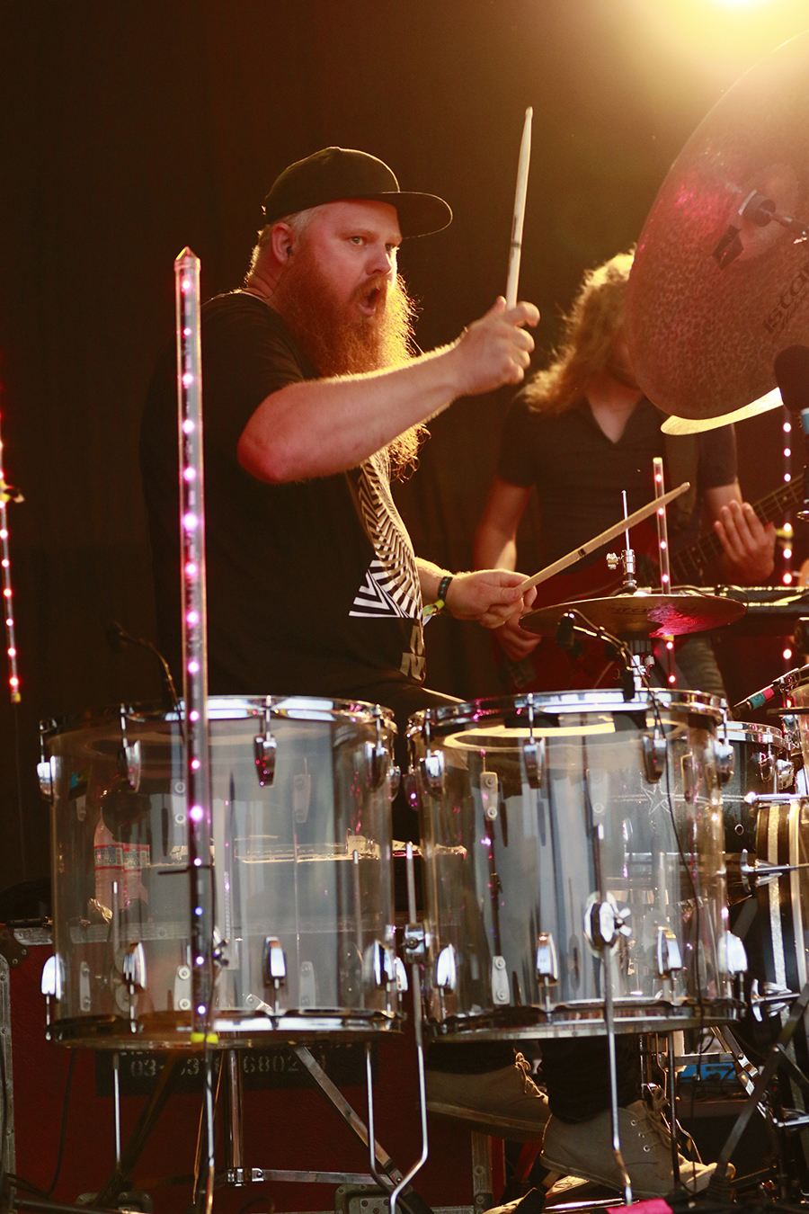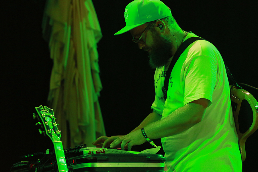 “エクスぺリメンタル・ジャズ”というと、いささか小難しい印象だが、浮遊感溢れるグルーヴ、北欧ならではポップネスと鉄板のバンド・アンサンブルで、前日から降り続いた雨のせいで沼化したガーデン・ステージを巨大なダンスフロアへと変えたジャガ・ジャジスト。レインボーに輝く無数のライトと楽器に埋め尽くされたステージ上。メンバー全員による入念なリハを経て、昨年リリースされた最新作『スターファイアー』から「Big City Music」でライブがスタート。ギター、ベース、管楽器、シンセサイザー、ドラムが緻密に組み立てる、緩急がある変則的なリズムとグルーヴに自然と体が動いてゆく。メンバーも次々と楽器を変え、万華鏡のようなカラフルなサウンドスケープが、まるでジェットコースターのように展開。赤毛&髭がトレードマークのドラマー、マーティンによるMCとメンバー紹介をはさみ、ラストは「Oban」で終了。50分間で計4曲という短いセットだったものの、夕暮れのガーデン・ステージは、何ともいえない高揚感に包まれていた。