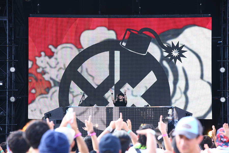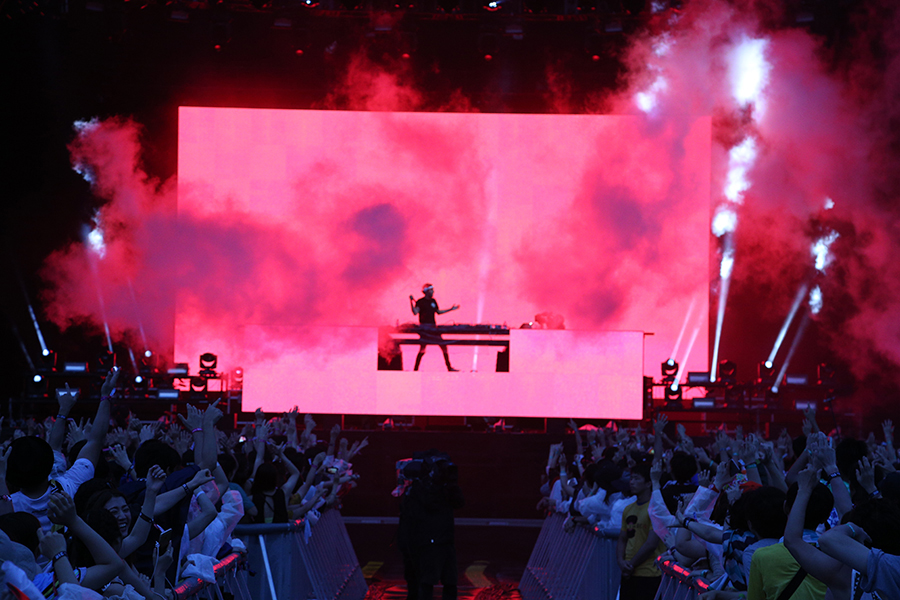 18時を過ぎ、暗くなっていくマリンステージに登場したのがアレッソ。ステージが始まる前は雨が降り天候が心配されていたが、開始時刻直前になると雨は止み、サマソニ初登場となる貴重なステージを見ようと大勢の観客が会場に押し寄せた。「Anthem」からスタートしたステージは、昼間に水曜日のカンパネラや星野源がライブを行った同じ会場と思えないような、ダンスフロアと化していた。「This Summer」「Under Control」「Cool」など人気曲をたたみかけ会場を盛り上げるなか、レーザーやバックの映像などステージ演出でも観客を盛り上げる姿は、まさに“EDMの貴公子”。ラストでは「Heroes」をプレイすると、会場からは大合唱が起こった。曲終盤ではアレッソがDJ卓に上がり、日の丸の国旗を掲げた。ステージ終了後にも日本国旗がモニターに映し出され、アレッソの日本愛を感じるステージとなった。