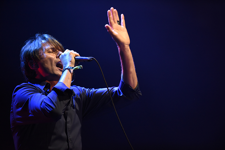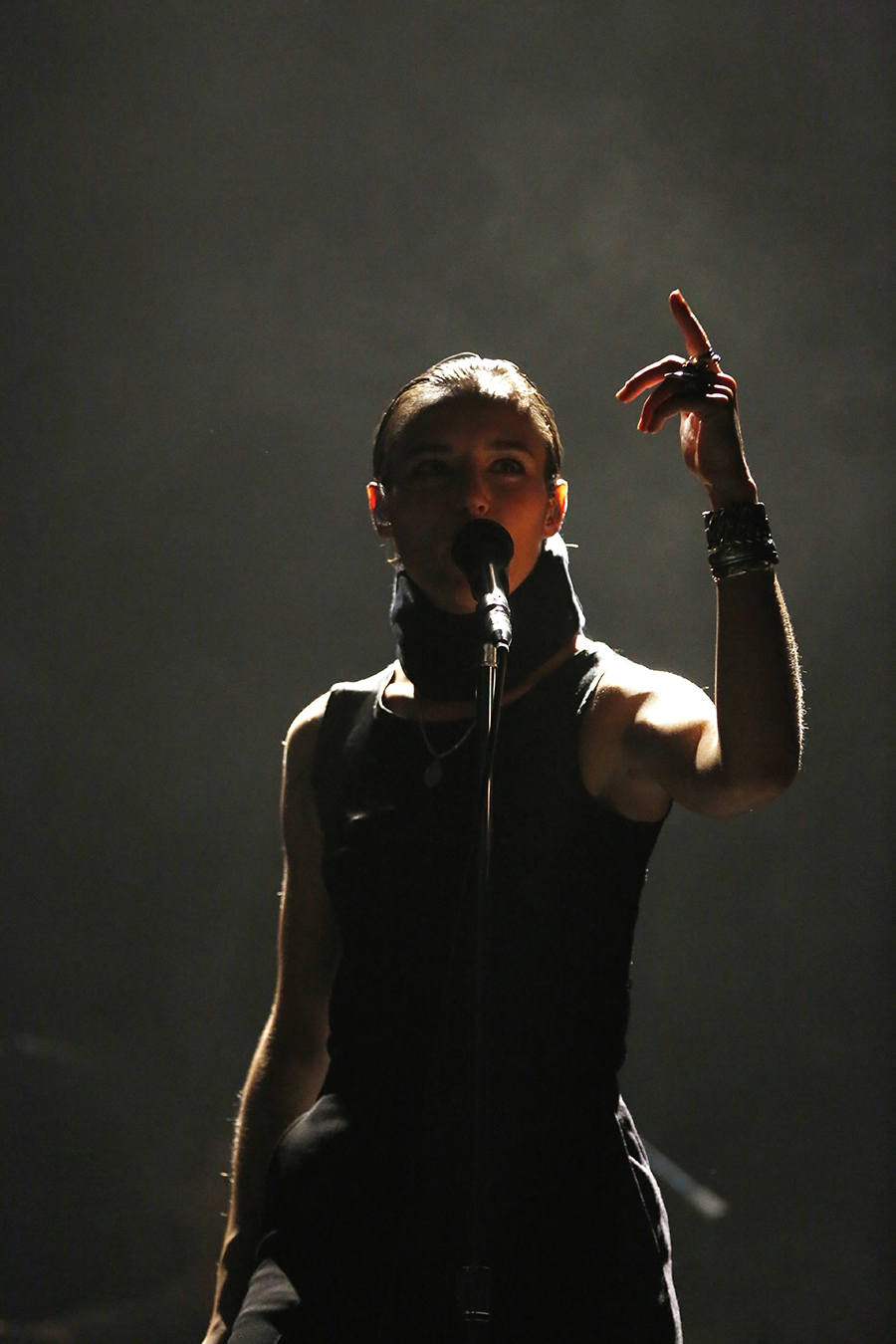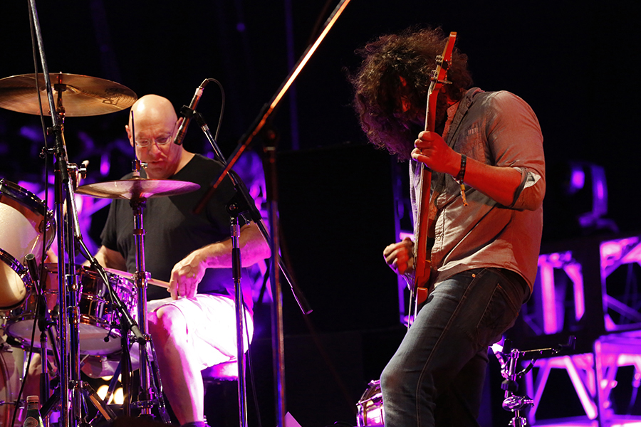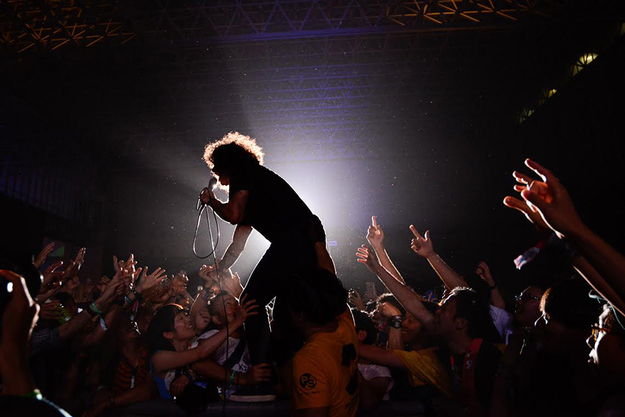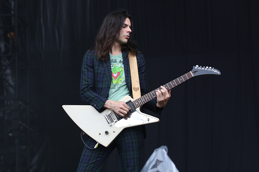この日のソニックステージのトリを務めたのはアット・ザ・ドライヴイン。「アークアーセナル」、「パターン・アゲインスト・ユーザー」と、3rdアルバム『リレーションシップ・オブ・コマンド』の冒頭2曲が披露されると、ステージにはラウドで叙情的なサウンドが響き渡り、彼らの抑えられない、というよりも抑える気のない激情が、早くも観客を巻き込み渦巻いていた。バンドのアフロツートップ、セドリック・ビクスラー(Vo)とオマー・ロドリゲス(Gt)のキレにキレまくったパフォーマンスも冴えわたる。続く「スリープウォーク・カプセル」では、日本で話題となった“例の空耳”大合唱も起こり、その後も、3rdアルバムの楽曲を中心に、熱量の大きいショーが展開される。アット・ザ・ドライヴイン完全復活宣言ともいえるようなステージだった。