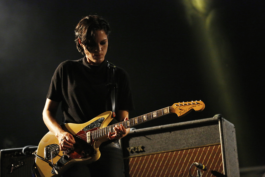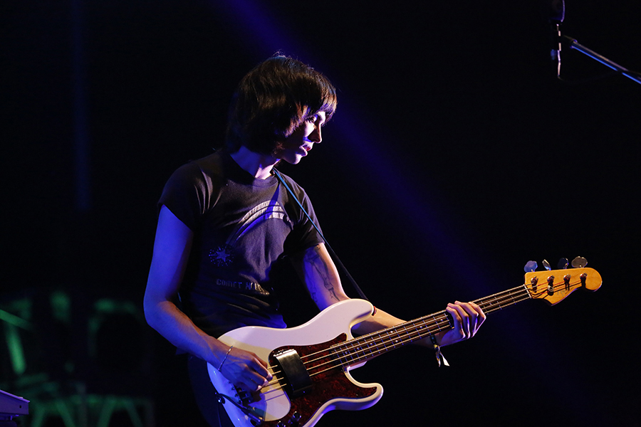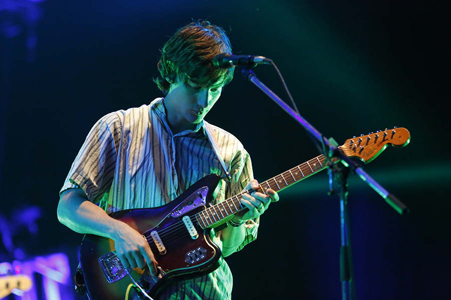 サックス、パーカッションのサポート奏者も加え、6人編成の最新モードで登場したこの日のディアハンター。ハットをかぶり、ロング・ジャケットを羽織ったブラッドフォード・コックスは、すっかり“ロック・スター”役が板についている。ライブは、2009年のEP収録の「Rainwater Cassette Exchange」にはじまり、「Revival」、「Breaker」と彼ららしいグルーヴィーな曲が続く。ブラッドフォードがギターを弾く場面も以前より減り、シューゲイザー的と言われることの多かったノイズ・ギターは潜まった。そして、その開けた空間でこれまで以上にファンキーに弾けるサックスやブラッドフォードの歌。終盤は、ライブ定番曲の「Desire Lines」で催眠的なロック・ジャムを聴かせ、ラストの「Snakeskin」で目の覚めるようなダンス・パンクのグルーヴを叩きつける。そんな鉄板の展開にも、バンドの成熟を感じるステージだった。