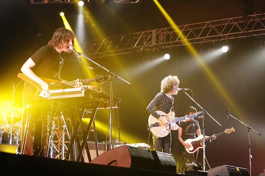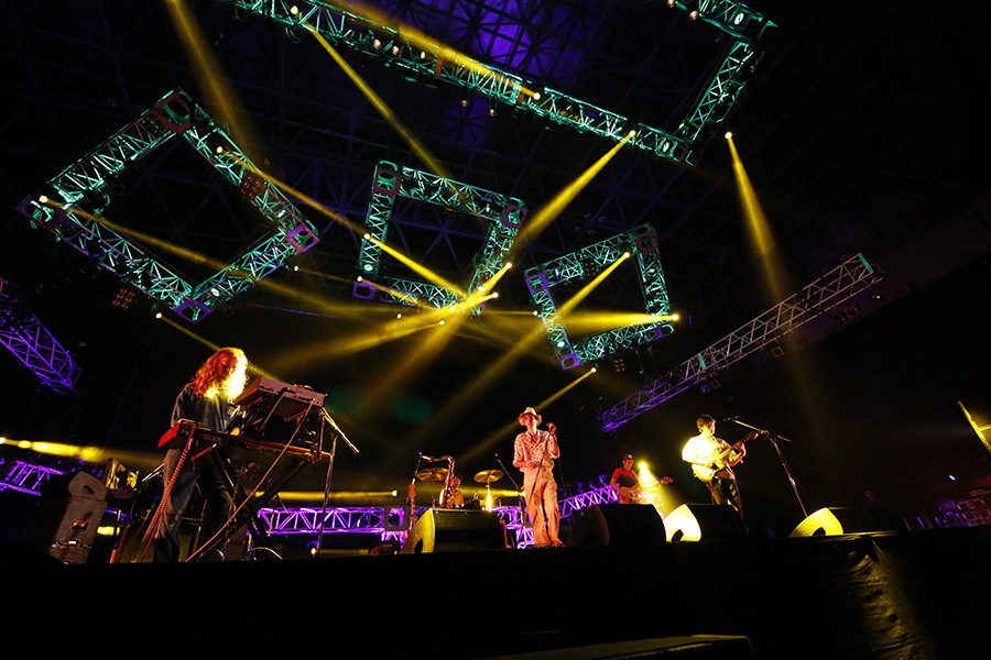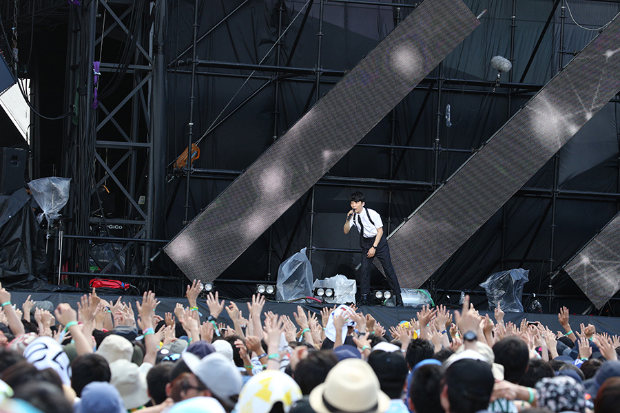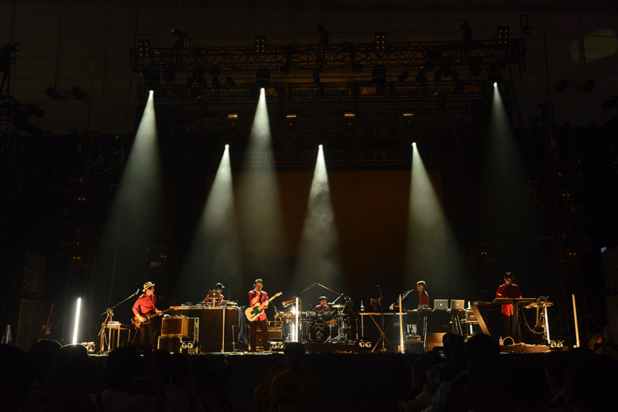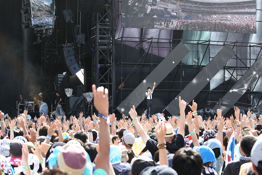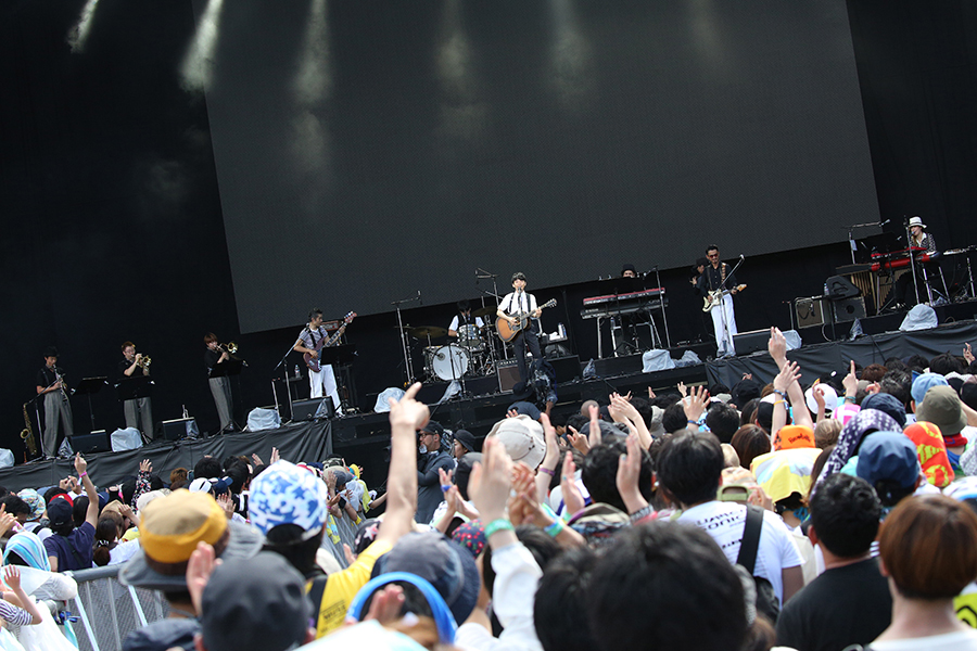 雨が心配されるマリンステージでは、14時過ぎに星野源のステージがスタート。小雨が降っていたなか、「地獄でなぜ悪い」が始まると太陽が姿を現し、マリンステージは快晴に。星野も「晴れて良かった」と笑顔を見せた。「化け物」「桜の森」と人気曲を演奏したあと、10月5日にニュージングル「恋」をリリースすることを発表。会場をさらに盛り上げた。さらに、快晴のマリンステージで日焼け止めのCMソングにもなった「夢の外へ」を披露。日差しが強まっていく会場にピッタリの曲となった。「Crazy Crazy」ではハンドマイクでステージを駆け回り、観客は思い思いに体を揺らし楽しんでいた。その後は、何度歌っても飽きないという「SUN」「Week End」「時よ」と立て続けに演奏し、長岡亮介(ペトロールズ)らが務めた豪華バックバンドとともに会場をハッピーな空気に包み、ステージに幕を下ろした。