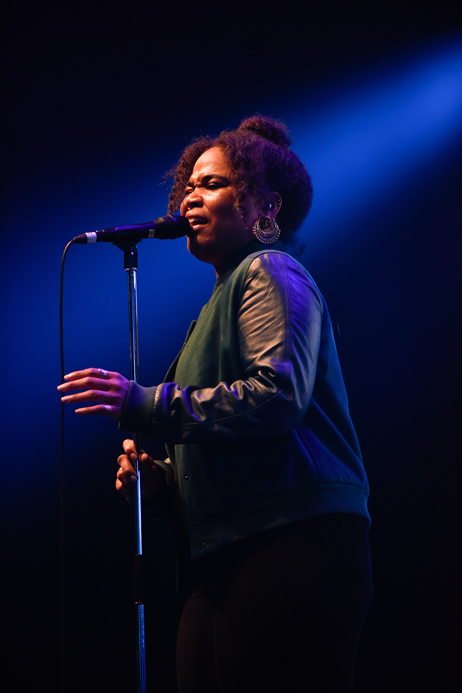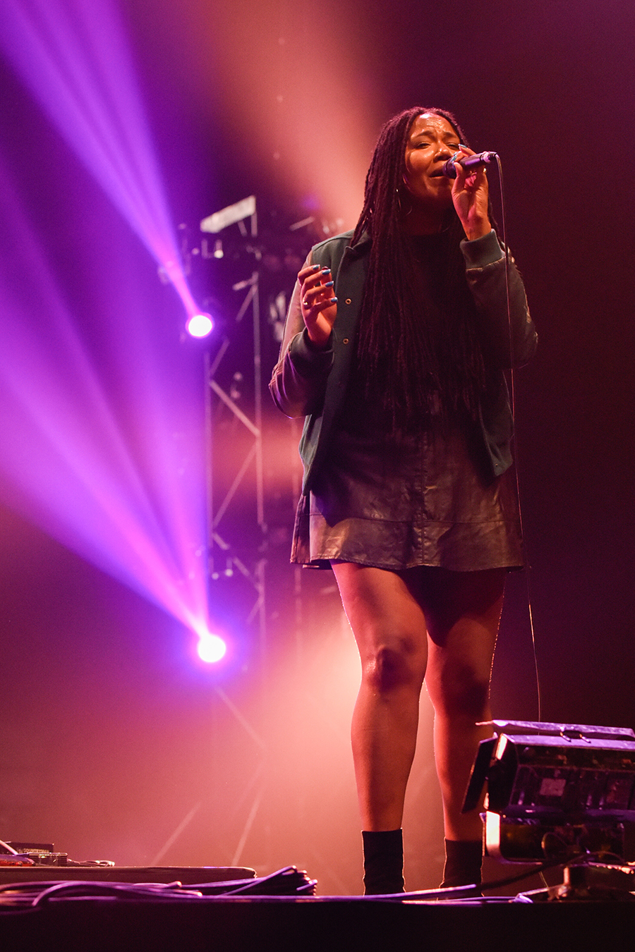黒Tシャツ(ちなみにアイスランドのレコ屋<Lucky Records>のもの)&ハーフパンツに靴下とスニーカーという、休日のお父さんのような出で立ちで「オハヨウゴザイマス!」と颯爽と登場すると、体を左右に揺らしながら「You & Him」に突入、ジワジワと会場を温めていく。続く「Grey Tickles, Black Pressure」、そして「Vietnam」では自身が敬愛する日本人トランぺッター、近藤等則氏がステージに。ジョン特有のややレフトフィールドなポップセンスと近藤氏のアヴァンギャルドな魅力が見事融合されたスリリングで官能的な展開に。ジョンの魅力の一つは、自由自在に操るバリトン・ヴォイスだが、名曲「GMF」では熱のこもった、ディーヴァさながらの歌唱で魅せ、心地よいベース音がステージを包み込んだラストの「Disappointing」ではステップを踏みながら、まるでポップスターのようにキュートに歌い上げた。観客の入りがや少な目だったのが残念だが、観る者をすべてをいろんな意味で虜にした個性豊かな逸材であることは間違いない。