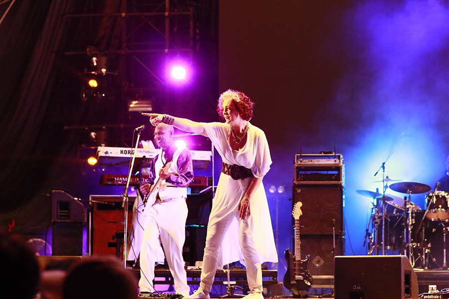 正午を回ったころ、マリンステージには白いTシャツに白いパンツ姿、そして青く染めた髪を束ねたエル・キングが登場した。デビュー・アルバム『ラヴ・スタッフ』の収録曲「ジャクソン」からスタート。マリンステージにエルのハスキー・ヴォイスが鳴り響くと更に観客が集まってきた。ギターを弾いたかと思うと、今度はバンジョーを弾きながら歌い上げ、ロックからカントリー調へ自由自在に変化する独特のスタイルでステージを盛り上げる。「東京が世界で1番お気に入りの街になったわ!今日ここに集まってくれてありがとう!昨日はカラオケにも行って本当に楽しかったの。」と初来日を思う存分楽しんでいるようだった。そして、最後にはヒットソング「エクシズ・アンド・オーズ」を披露し、会場を熱気に包んだままステージを後にした。