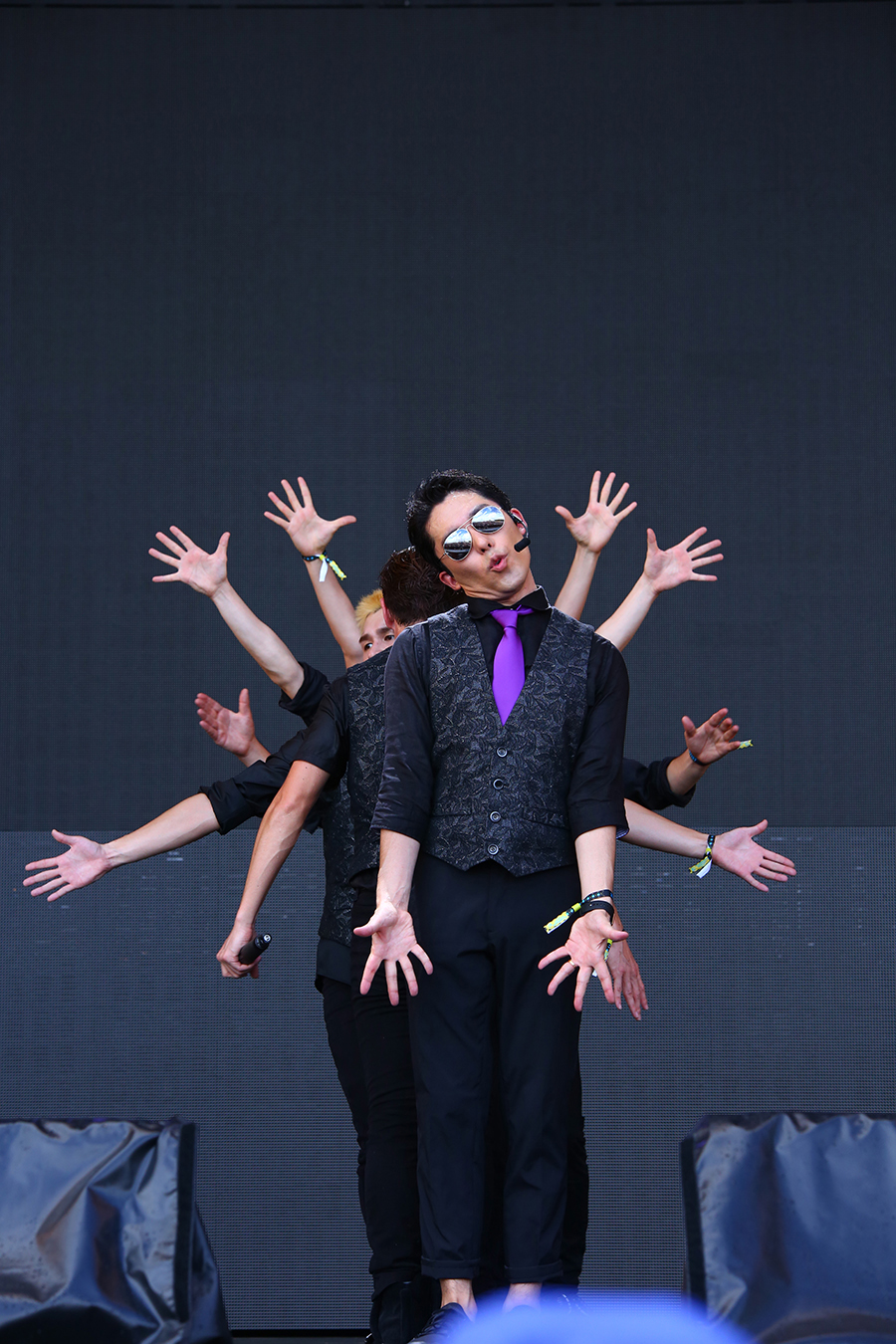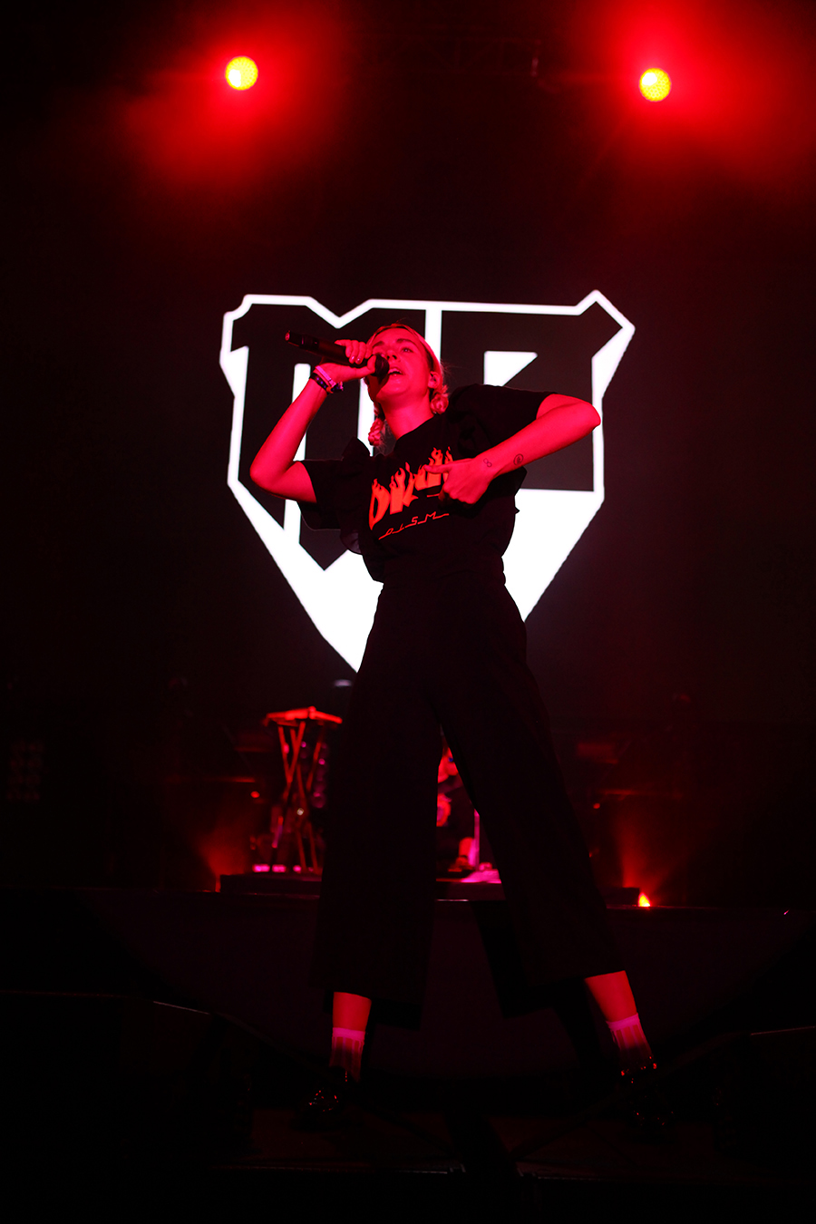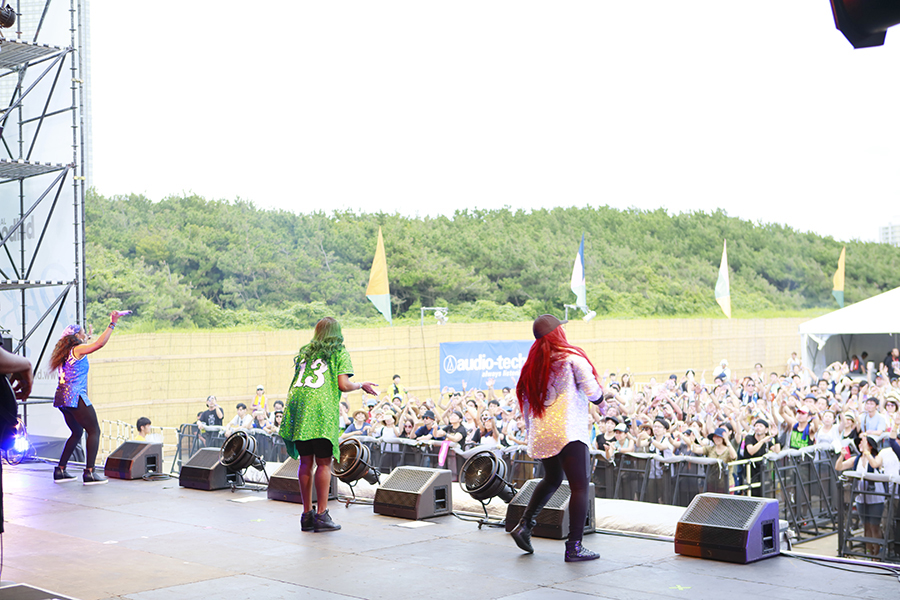 2日目のマウンテンステージに12:40から登場したのが、デンマーク出身のムーだ。MØの文字が大きくスクリーンに浮かび上がると、TOKYOとプリントされたTシャツを着たムーが登場。多くの観客で埋め尽くしていたマウンテンから歓声が鳴り響いた。「Don't Wanna Dance」で、くねくねダンスを披露し、「コンニチハ!」と叫ぶ度に、オーディエンスは大興奮だ。「True Romance」や「Waste Of Time」などを披露し、「Pilgrim」では曲中で流れる“Ayo”をシャウトしながら客席へ降り、観客とハイタッチ。最後に彼女を一躍有名にした「リーン・オン」に合わせて観客全員がジャンプしてダンスして、大合唱もして会場を大きく揺らせた。ムーはどこまで進化していくのか、今後の活躍が楽しみだ。