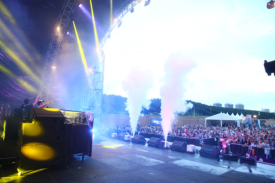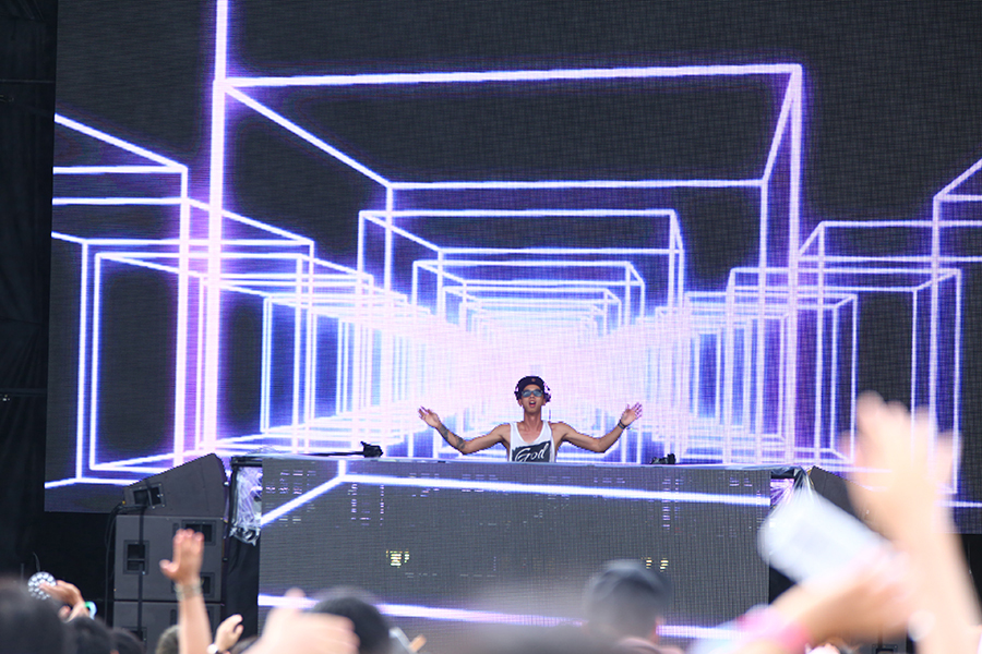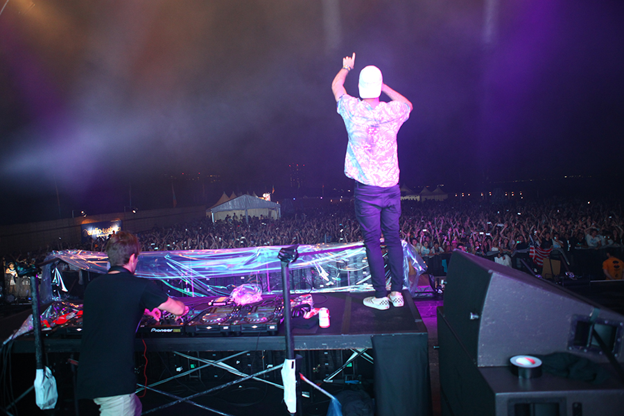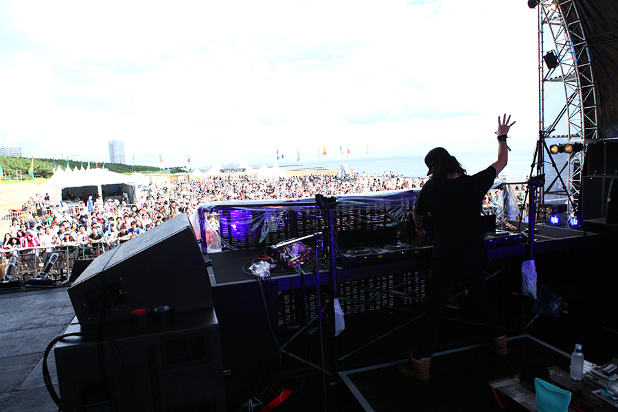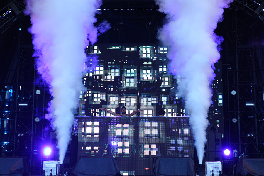 東京1日目のビーチステージは、シンガーポールのダンスミュージック・ビーチフェス【ZoukOut】とのコラボレーション。国内はもとより世界でも活躍しているYAMATOのDJプレイで幕を開け、シンガポールの人気DJ・ZUSHANがその流れを引き継いでいく。日が傾いてくる時間帯には、トロピカル・ハウスシーンを引っ張るオランダの若きDJ・サム・フェルド、バウンス系EDMデュオ・ヴィナイが卓越したスキルでオーディエンスを踊らせる。そして、この日のビーチステージのトリは、ザ・チェインスモーカーズ。「クローサー」が、9月3日付米ビルボード・ソング・チャートで自身初の1位を獲得したことも話題となったニューヨーク在住のDJ兼プロデューサーの2人組が、暗くなったビーチのダンスフロアをさらに盛り上げる。彼らのヒット曲「#Selfie」「ロージズ」などはもちろん、ジャスティン・ビーバー「ラブ・ユアセルフ」なども繋いでいく、EDMの枠にとらわれない選曲で集まったオーディエンスは体を揺らし続けていた。