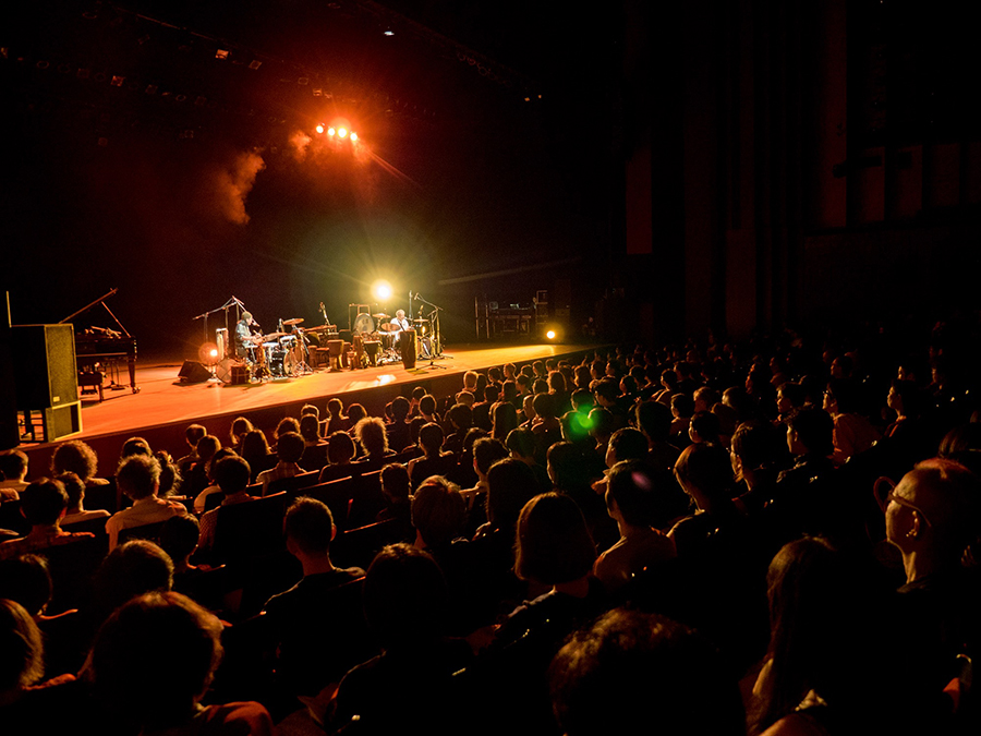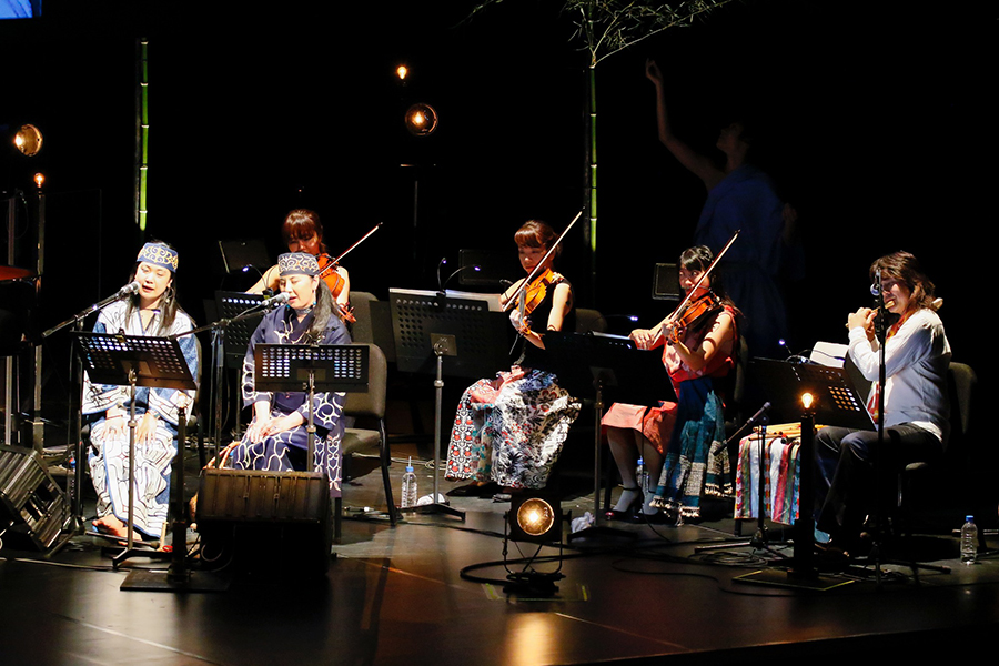本フェスティバルのディレクターを務める高木正勝。9月3日、ロームシアター京都メインホールの最終ステージでは、高木のコンサートシリーズ“山咲み”のスペシャルバージョンが行われた。会場に足を踏み入れると、ステージには竹が飾られ、どこからともなく鳥の鳴き声や川の流れる音が聞こえてくる。幕が開けてからの照明も、不規則に瞬いたり一番星のように光輝いたりと野外ライブに来たようだ。2013年に兵庫県内の山間に移住した高木は「3年間で村から頂いたことを、ここで返せたら」と挨拶。高木のピアノと歌に、アイヌ歌唱や、和太鼓、ブズーキなど様々な楽器のほかダンスや紙芝居などが加わり唯一無二の世界が繰り広げられた。高木は終始、客席の家族に声を掛けたり、村から公演を観に来てくれた友人に手を振ったりとリラックスした雰囲気で、観客も高木の村のお祭りに招かれたかのよう。公演の最後には、ステージで高木が口にした「受け継ぐ」という言葉の通り、村の景色や住人の笑顔が映し出され、自然の恵みの豊かさや、人と人との温かさ、そして多幸感が場内を埋め尽くした。