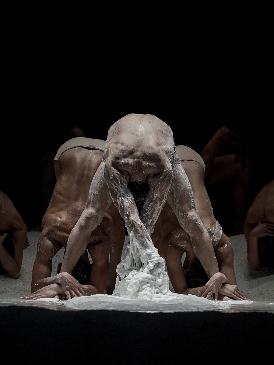 本フェスティバルのディレクター名和晃平と、ベルギーを代表する振付家ダミアン・ジャレのコラボレーション「VESSEL」が9月3、4日の両日行われた。両者は2015年5月より、フランス政府が運営するアーティストレジデンス施設で、共に創作活動をスタート。重力、液体、トランスフォーム、メタモルフォーゼなどをテーマに様々な実験を続け、その結果生まれた「VESSEL」は2015年大阪クリエイティブセンターにて初演された。開演時間になると場内は真っ暗に。少しずつ浮かび上がる白い塊、筋肉の塊、そして水を弾く音と原摩利彦による音楽が会場を満たす。まるでダンスを見ているというより、会場全体が1つのインスタレーションになったかのようだ。出演者は、それぞれに匿名性を与えるため、舞台上では常にヘッドレスという頭部を見せない特徴的なポーズを取り性別すら分からない。徹底的に顔を見せず動き続ける7人のダンサーたち。鍛え上げられたその肉体は、人間というよりも名和が作り上げた彫刻なのかもしれないと思うほど美しかった。そして予測不能のステージは、意外な締めくくり方によって、約1時間の幕を閉じた。本公演は10月に瀬戸内芸術祭、2017年1月には横浜ダンスコレクションにて上演が予定されている。