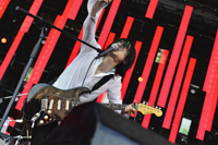 『悲しみの果て』、『俺たちの明日』とヒット作を立て続けに披露しオーディエンスの心をいとも簡単にかっさらってゆく。そして「自慢の弾き語りの曲をやります。人生は素晴らしい、よく分からないけど、きっと素晴らしいはずだ。」という繊細な言葉を添えてパフォーマンスされたのは今年5月にリリースされた最新アルバム「MASTERPIECE」から『七色の虹の橋』。誰もがその場に打ち付けられたかのように宮本の弾き語りを見守る。灼熱の太陽も、風さえも宮本の声にじっと耳を澄ましているかのような特別な空気がそこには流れていた。弾き語りを終えると一転、バンドが再び重々しいサウンドを奏で始め「MASTERPIECE」のオープニングを飾る『我が祈り』に突入。アルバムの冒頭で異様なまでの緊張感を与え訴えかけてくるこの曲が、ライブではその何十倍ものインパクトを放つ瞬間を見せつけられた。そして名曲『今宵の月のように』をしっかり聴かせてメンバー紹介、疾走感溢れる『so many people』をはさみ、再び「MASTERPIECE」から攻撃力抜群の『世界伝統のマスター馬鹿』へと続く。「馬鹿」という2文字にここまで真正面から正々堂々と世に吐き出す男が他に居るだろうか。そんなことをふと思いながら、宮本の挑発的なパフォーマンスに揺さぶられ会場の温度がどんどん上がってゆくのを肌で感じる。「エレカシ、すげえ。」フェスならではともいえるつぶやきがあちこちで聞こえる。もちろん、その声が聞こえたわけではないだろうが、さらに宮本は観客を眼光鋭く睨み付け、ライブの定番「ガストロンジャー」で遂にそのキレっぷりは頂点に。ステージを縦横無尽に駆け回りフラストレーションを爆発させる。「お前も!お前も!みんな大好きなんだろう?」と煽り、連呼したのは「おとしどころ」=妥協、馴れ合い、駆け引き…世の曖昧さの象徴ともいえるこの言葉に照準を定め、「みんな大好き、おとしどころ」と皮肉たっぷりにブッタ斬り、「化けの皮を剥がしにいこうぜ」とキメる。さらにドラムの冨永に向かって「うるさい!」と叫び、マイクを投げ捨て、高緑のベースを取り上げソロを披露…永遠にこの曲は終わらないのでは、とすら思えた『ガストロンジャー』の凄まじい勢いそのままに、沸点に達したオーディエンスをさらに鼓舞する『ファイティングマン』で締めくくった。