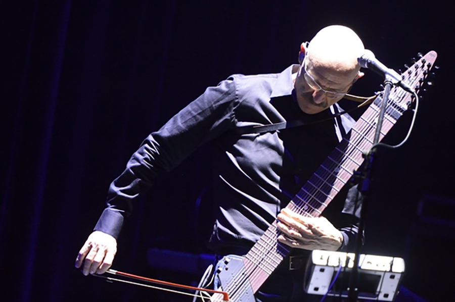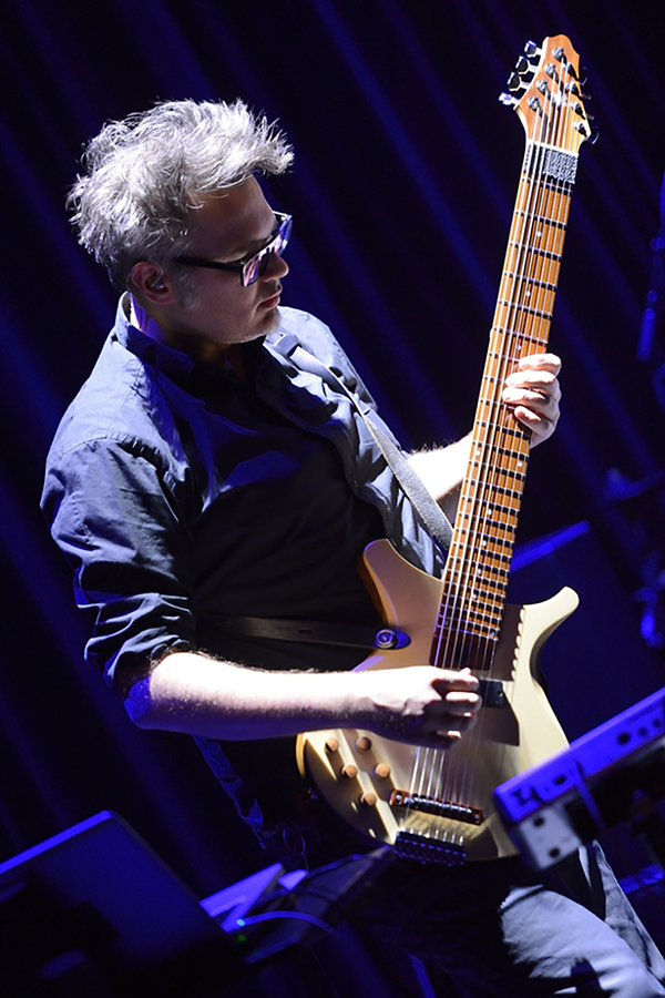 そしてミスター・ミスターからXTCやシュガーキューブス等でのセッションを重ね、シルヴィアン/フリップを経て'90年代にダブル・トリオ期のキング・クリムゾンに参加以降、エレクトロニクスを交えたドラム&パーカッションから多彩な音を繰り出すパット・マステロット(もちろん彼が手にするのはドラム・“スティック”だ)。ドイツ出身でcentrozoonやマステロットとのデュオ=Tunerで知られ、ロバート・フリップのギター・クラフト出身でもあるマーカス・ロイター。スティックの展開型楽器であり、ロイター自身が開発にも携わったタッチ・ギターの多彩なサウンドは生で接すると一層その威力に納得させられるだろう。