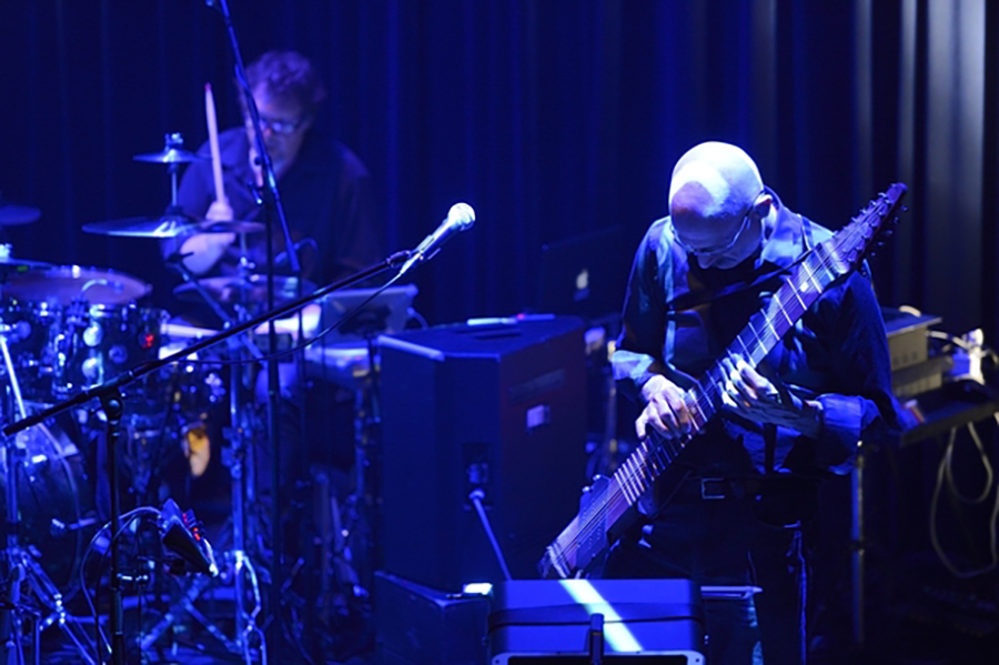 新メンバーにマーカス・ロイターを迎えた編成のSTICK MENとしては、初の単独公演となる今回、スペシャル・ゲストとしてロバート・フリップとの新譜をリリースしたデヴィッド・クロスが参加という、時期的には重ならないもののKING CRIMSON(以下 KC)の新旧メンバー3人が並ぶ特別編成であり、ファンにはお馴染みのKCナンバーをクライマックスに置きながらも、STICK MENのナンバーや多彩なインプロヴィゼーションにおいて、キャリアを感じさせる見事な反応や応酬の掛け合いを披露し、観客を楽しませてくれた。