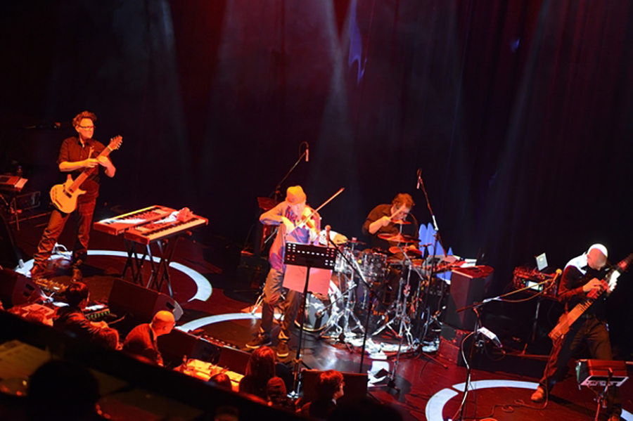 また、STICK MENのナンバー、“Hide The Trees” と “Cusp” では、曲中通してまではいかないもののクロスも中間部で登場、積極的にソロやアンサンブルを構築して、STICK MENのみでの演奏とは異なる共演場面を作ってパフォーマンス面含めて盛り上げてくれたのはひとつの見所だったと思う。3曲目に披露されたインプロヴィゼーションも、クロスがピチカートでミドル・テンポのリズムを提示すると、STICK MEN側も即座に対応、ロック寄りのリズムでクロスのソロをもり立ててゆく。この演奏が始まった際、筆者は初めて聴くきちんと構成された曲だと思ったものだった。この辺りはアルバムからライヴやツアーでインプロヴィゼーションを積極的に導入してきたSTICK MENならではの実力だとも言えるのだろう。