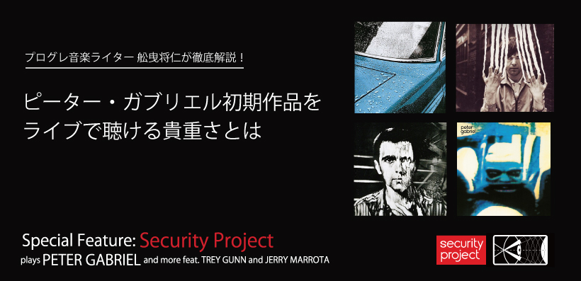 ピーター・ガブリエル作品の音楽世界を体現する随一のユニット、セキュリティー・プロジェクトが2017年4月に東京と大阪のビルボードライブで来日公演を開催する。ピーター・ガブリエル・バンド、キング・クリムゾン等の元メンバーが集ったスーパー・グループについて、そしてなぜピーター・ガブリエルの作品をプレイするのか、ロック・ファン注目のステージを前にプログレ系全般の音楽ライターでライナーノーツも務める舩曳将仁氏に解説してもらった。