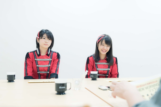 加賀楓:横山です。 横山玲奈:本当? ウソでしょ? 加賀楓:歌やダンスに関しては長くやっている私のほうが出来て当然だと思うんですけど、MCとか喋ることに関しては横山のほうが上手だなと思っていて。私はどうしてもその場でいろんな言葉を選んで、すっごい考えた上でまとまってない話をしちゃう。なので、MCやこういう取材では横山に助けられている部分があります。--今の話を聞いてどうですか?