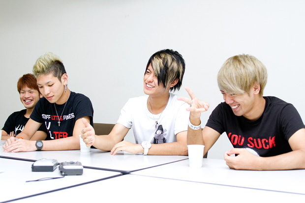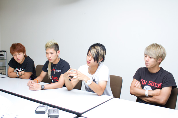 ユウイチ(dr):でもこの4人で一番音楽を聴いてなかったのは自分だと思います。ずっと遊んでばっかりで。お姉ちゃんの影響で倖田來未とかEXILEとかmihimaru GTとかは聴いていたんですけど、バンドものは全然聴かなかったんです。高校になってジュンタがいろいろ聴かせてくれて、ようやく格好良いバンドの存在を知ったので。それからは「自分もバンドで頑張ってやろう」と思うようになりました。