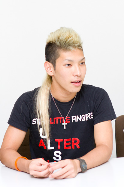 チカラ:俺、ベースやってるときに指折れたんです。ハンドボール部で。それなのに「ベース弾け」って言うんですよ。「いやいや、弾けねぇよ!」っていう。そしたら「弦をこうして押したら音は鳴るんだよ。ハンマリングって言うんだけど、それでやれ」って。で、必死に弦押して。「俺、何やってんだろ。筋トレやってんのかな?」みたいな。