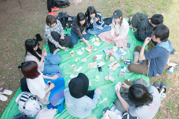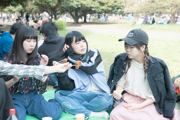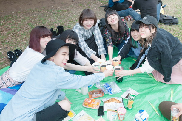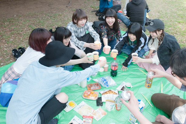 --5月よりカミヤサキがBiSへレンタル移籍ということで、その前の最後の宴として花見の場を用意させて頂きました。今日はワイワイ楽しみながらも各々の想いをぶつけ合ってもらえればなと思っております。それでは、かんぱーい!