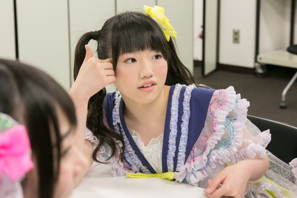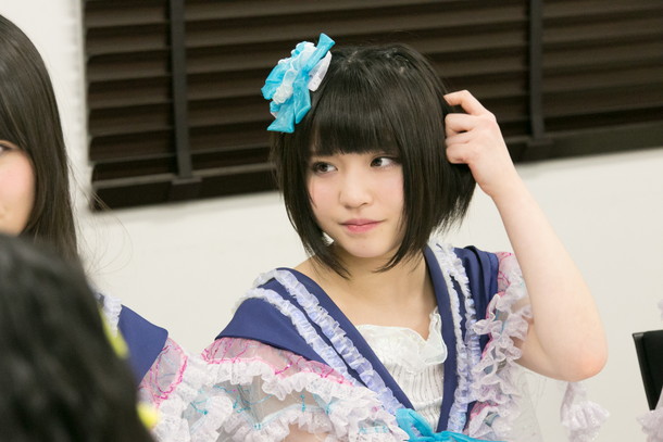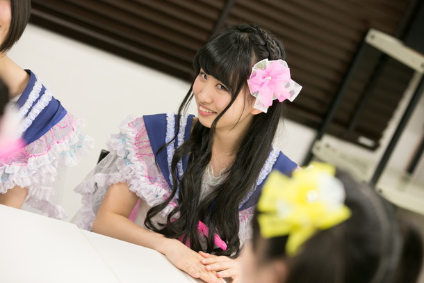的場華鈴:フリフリした服が好きなんですよ! まさに今着ている衣装みたいなフリフリした服が好きで。でも習っていたジャズダンスではこういう衣装を着て踊れないんです。すごくパキっとした服とか、自分のタイプじゃない方向の衣装を着ることが多かったんですけど、私はどうしてもフリフリした衣装で踊りたかったんですよ。そのときにAKB48さんの「十年桜」のMVを見つけて「これだ!」ってなったんです! すごく可愛い衣装で踊ってて「良いなぁ」と思って……すごく不純な動機なんですけど。--ちっとも不純じゃないですよ(笑)?