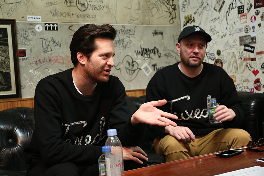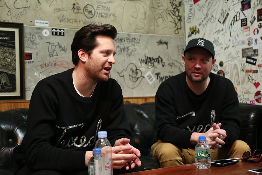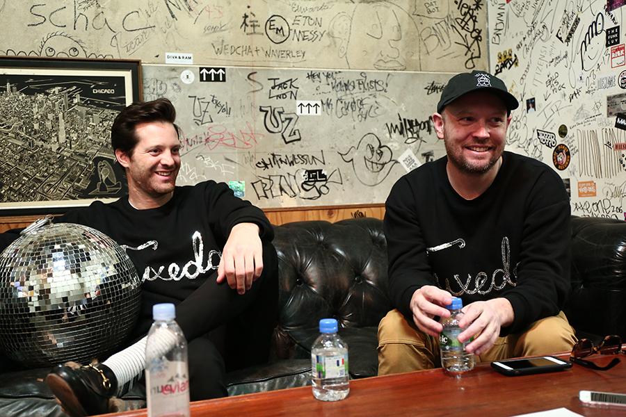 メイヤー・ホーソーンとジェイク・ワンによるファンク・ユニット=タキシード。80’sサウンドとグルーヴが現代の音楽シーンに見事にハマり、2015年にリリースした1stアルバム『Tuxedo』が世界中でヒットを記録し、日本でもリリースパーティーや来日公演、そして【SUMMER SONIC 2015】のBillboard JAPAN Party ステージに多くの観客が駆け付けた。ノリのいい音楽を作り続ける彼らが、待望の2ndアルバム『Tuxedo II』を2017年3月24日にリリース。今年も【SUMMER SONIC 2017】のBillboard JAPAN Party!の出演と東京&大阪単独公演も決定している。今回、4月22日にSOUND MUSEUM VISIONで開催されたリリースパーティーのため来日したタキシードにインタビューし、新作やファンク界の大先輩ZAPP、そして二人が愛してやまない“レコード愛”について、たっぷり語ってもらった。